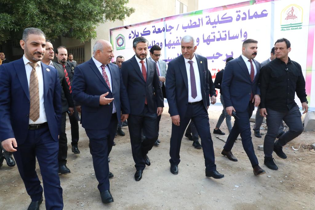 وتجول وزير التعليم بحضور السيد محافظ كربلاء المقدسة السيد نصيف جاسم الخطابي وعدد من نواب المحافظة ورئيس الجامعة الدكتور باسم خليل السعيدي في أروقة كليات الطب وطب الأسنان والصيدلة التي افتتح فيها مختبرات تخصصية حديثة وقاعات دراسية وعدد من الأبنية الجامعية الخدمية.