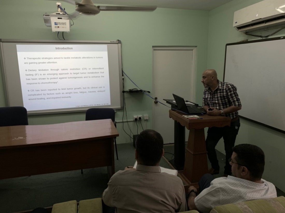 أقام المركز العراقي لبحوث السرطان والوراثة الطبية في الجامعة المستنصرية، محاضرة علمية عن التأثير التعاضدي لانخفاض الكلوز وعقار الميتفورمين في إضعاف عملية الأيض والتقليل من نمو الخلايا السرطانية.