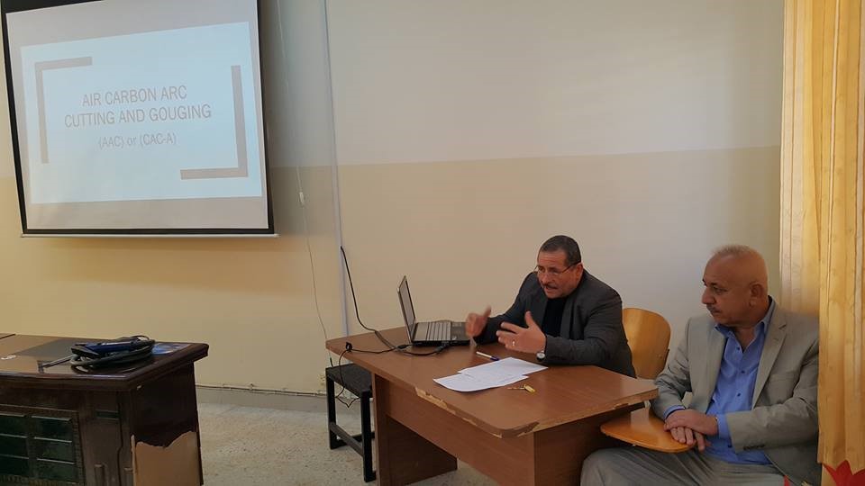 وناقشت الندوة عملية قطع المعادن باستعمال القوس الكهربائي لقطب كاربوني وبوجود ضغط هواء (القلع) الذي يتميز بسرعة لأجراء عملية القطع بصورة آمنه ولجميع انواع المعادن.