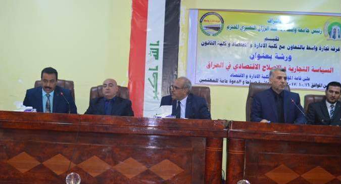 نظمت كلية الإدارة والاقتصاد وكلية القانون في جامعة واسط, ندوة عن السياسة التجارية والإصلاح الاقتصادي في العراق، بمشاركة باحثين ومختصين.