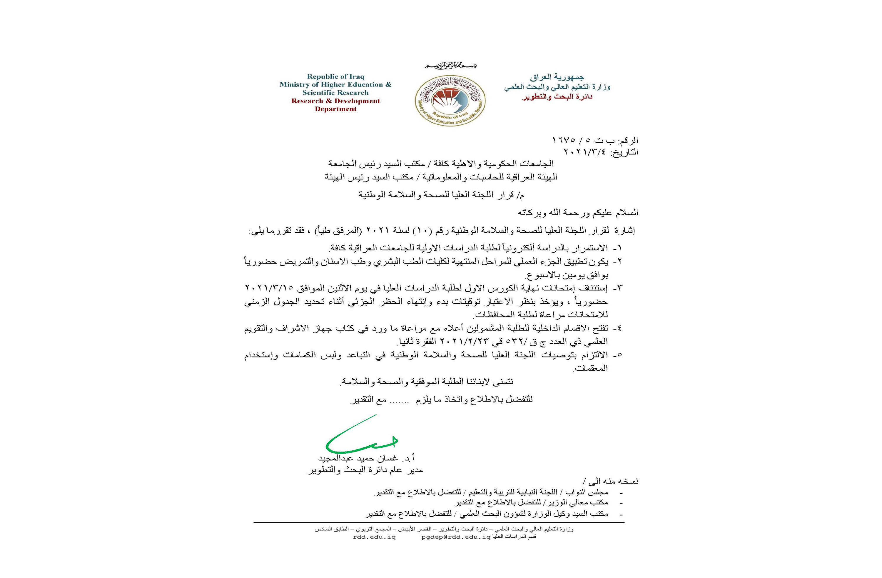 تواصل معنا لأي استفسار على الخدمات التي تقدمها وزارة التعليم العالي والبحث العلمي