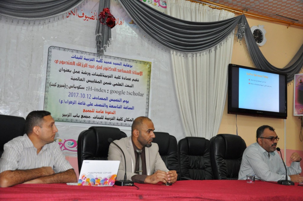 عقدت كلية التربية للبنات في جامعة البصرة، ورشة عمل عن البحث العلمي ضمن المقاييس العالمية سيرج كبت سكوباس، بمشاركة عدد من الباحثين والمختصين .