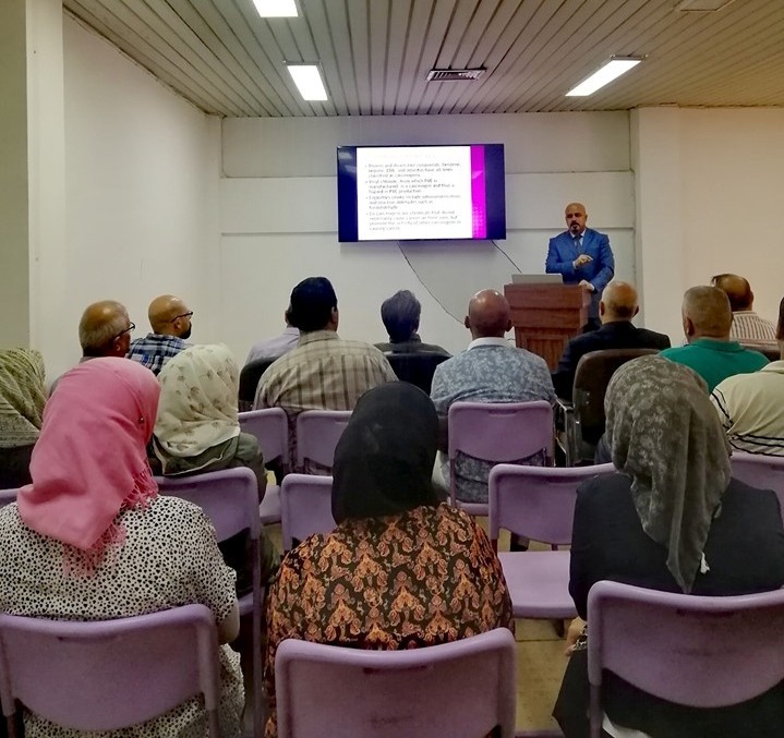 وتضمنت الورشة، القاء محاضرات قدمها الدكتور إبراهيم مهدي السوداني، والدكتورة زينة عبد الحميد، تناولت الملوثات البيئة المسرطنة، وآليات خفضها والتقليل من آثارها البيئة، وطرق معالجتها، وآليات الكشف المبكر لسرطان الثدي وكيفية التشخيص، والوقاية والعلاج.