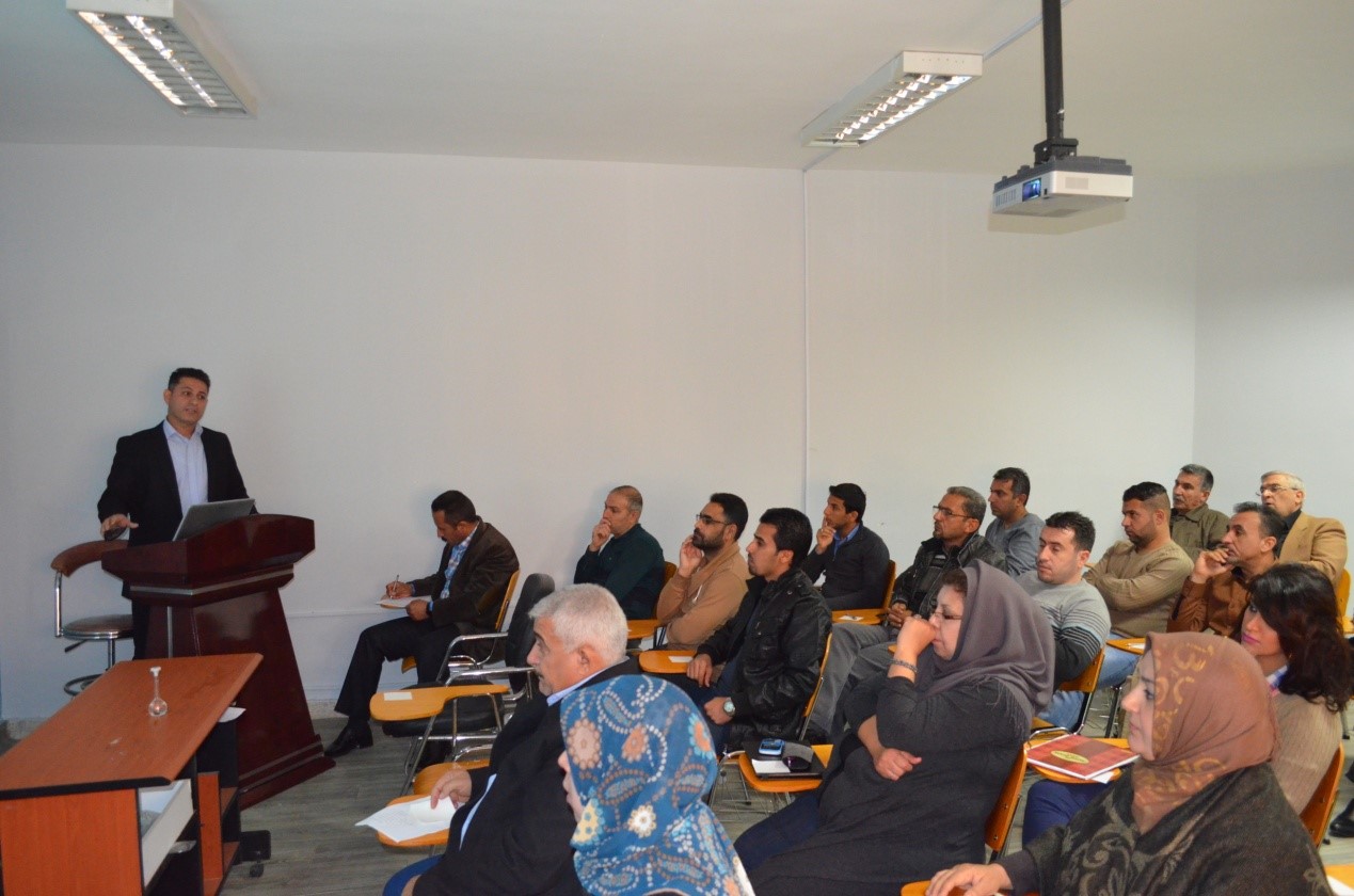 وتضمنت الدورة محاضرة ألقاها الباحث عمر فريد احمد تناول خلالها طبيعة الاقتصاد المدور وتطبيقاته على المنتجات في العراق من خلال التقليل من مادة الكاربون ابتداءً من استخراج المواد الأولية من الطبيعة ونقلها وتصنيعها وصولاً إلى نهاية العمر الإنتاجي للمنتج وتدويره ضمن النظام البيئي .