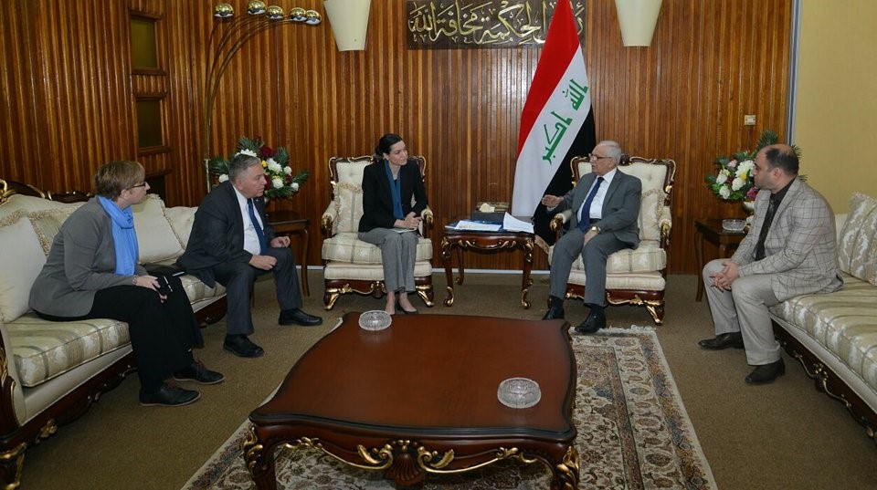 بحث وزير التعليم العالي والبحث العلمي الدكتور عبد الرزاق العيسى، مع وفد المعهد الأمريكي للأبحاث الأكاديمية في العراق برئاسة البرفسور كاثرين هانسن, التعاون العلمي الثقافي.