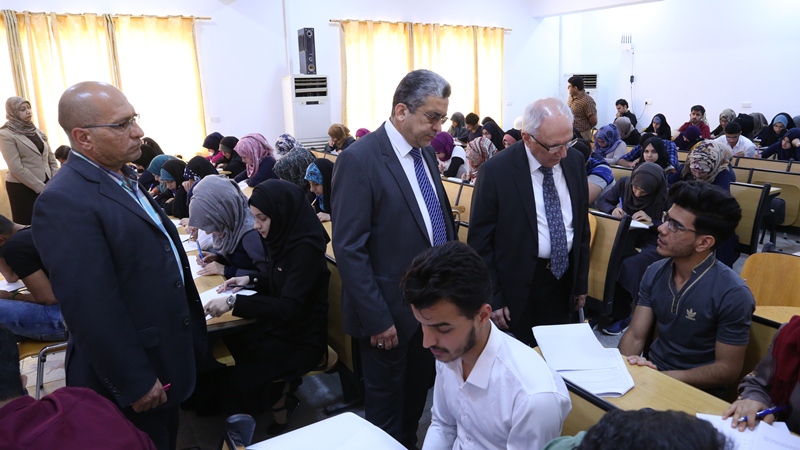 تفقد وزير التعليم العالي والبحث العلمي الدكتور عبد الرزاق العيسى، سير الامتحانات النهائية للمراحل الدراسية في كليات الصيدلة والتمريض والفقه في جامعة الكوفة.