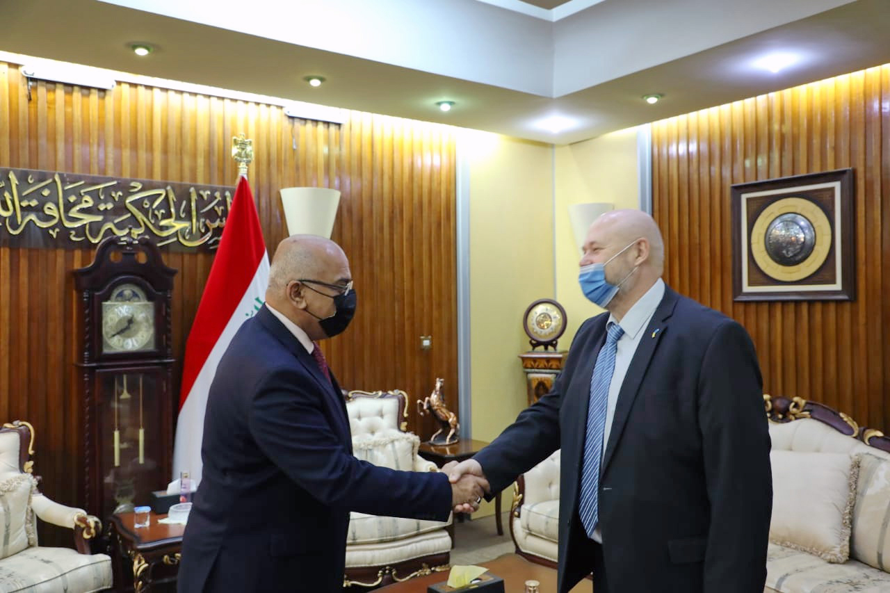 استقبل وزير التعليم العالي والبحث العلمي الأستاذ الدكتور نبيل كاظم عبد الصاحب القائم بالأعمال لجمهورية أوكرانيا في العراق السيد أليكسندر بورفجينكوف وناقشا مسارات التعاون بين الجامعات وتطوير العلاقات الأكاديمية في المجالات التخصصية.