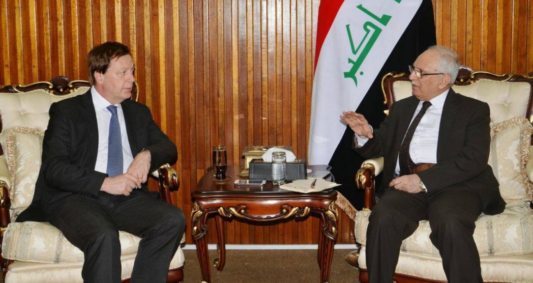 بحث وزير التعليم العالي والبحث العلمي الدكتور عبد الرزاق العيسى مع السفير البريطاني في العراق فرانك بيكر تطوير العلاقات الثقافية والعلمية.