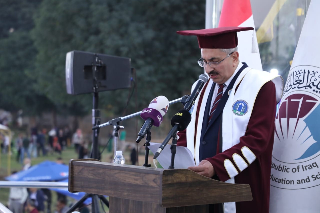 وأشار في كلمته الى الشروع بدراسة علمية لتعديل نظام القبول في الدراسات العليا وتقليل الآثار المترتبة على المؤشرات الكمية في بيئة التعليم العالي والإفادة القصوى من نتائج البحوث التطبيقية ذات الجدوى العلمية والاقتصادية والاجتماعية وايجاد نوع من التكافؤ بين موارد الجامعة ومتطلبات البحث والنشر العلمي وإجراء الشراكات الإيجابية بين الجامعات العراقية ونظيراتها العالمية على صعيد التدريب وتبادل الخبرات.