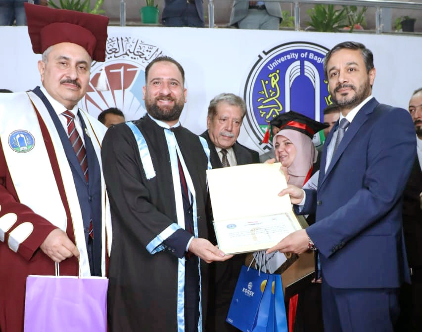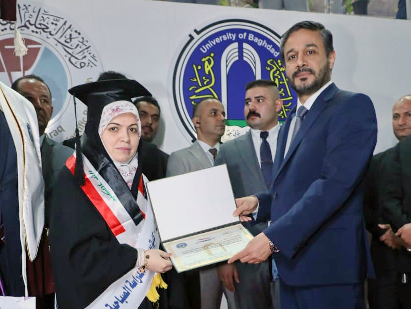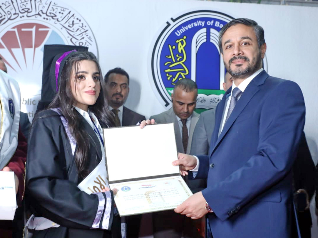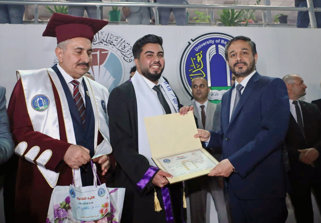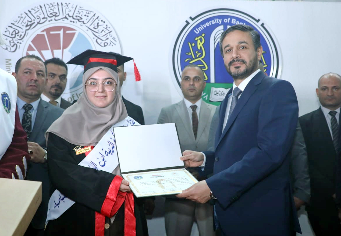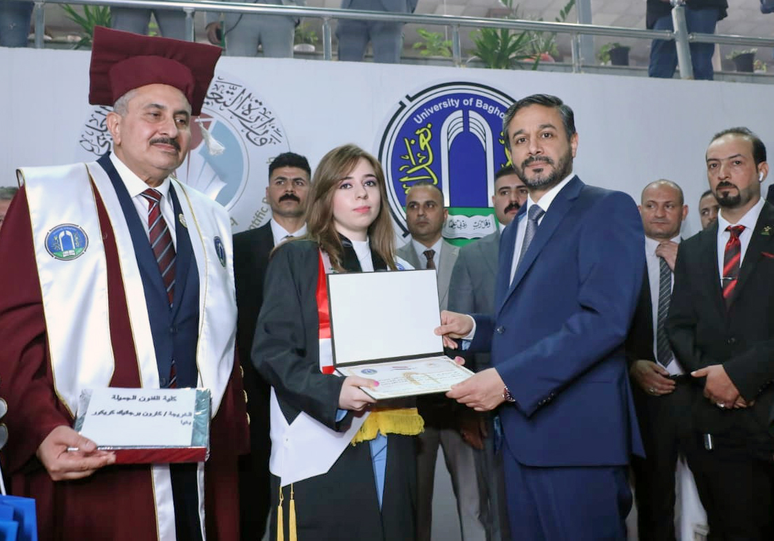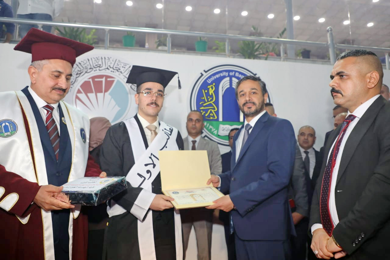 وتضمن حفل التخرج ترديد القسم للخريجين فيما كرم وزير التعليم العالي والبحث العلمي الدكتور نعيم العبودي الطلبة الأوائل مباركا لهم جهودهم وسعيهم في تحقيق طموحهم العلمي واعتلاء منصات التميز في جامعة بغداد.