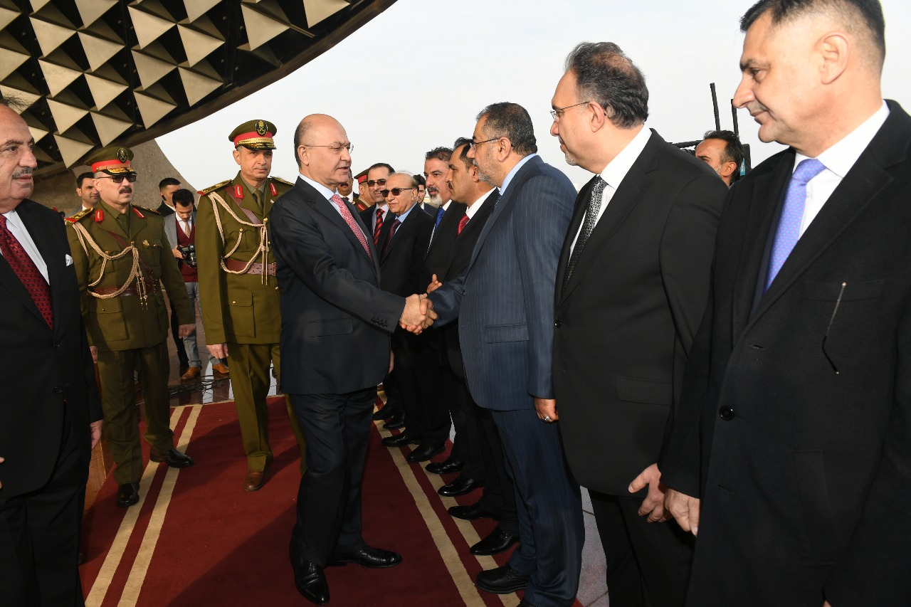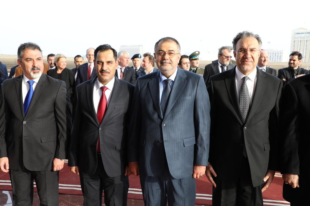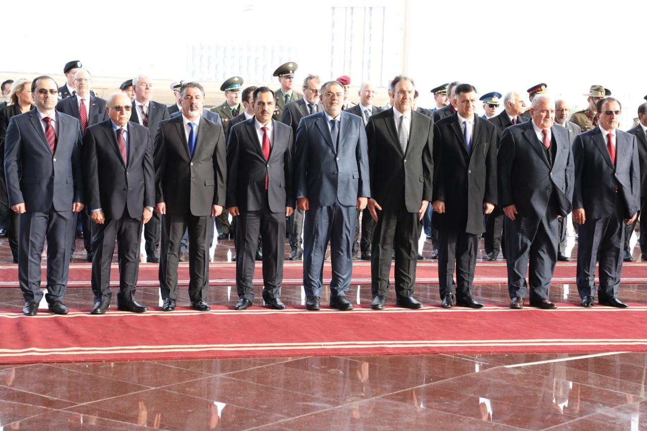 فضلا عن ممثلي الهيئات والبعثات الدبلوماسية في العراق،وتضمنت أيضا تفتيش حرس الشرف وعزف السلام الجمهوري وقراءة سورة الفاتحة على أرواح شهداء القوات المسلحة.