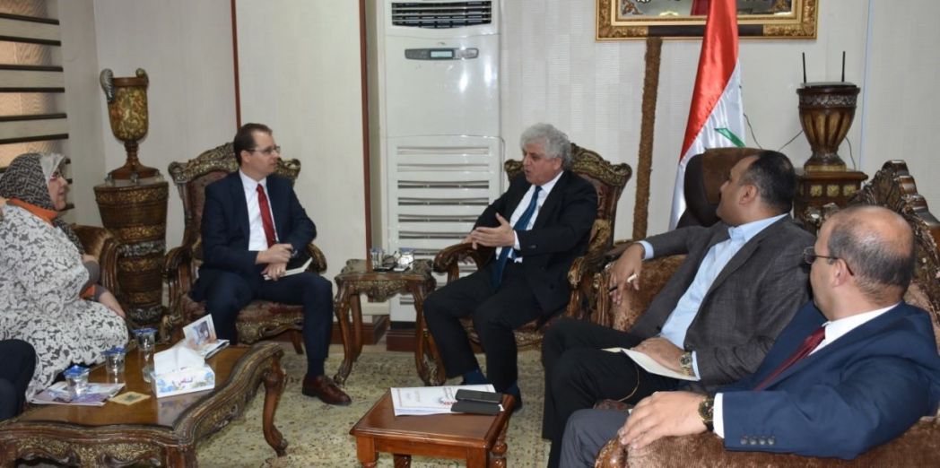 بحث وكيل وزارة التعليم العالي والبحث العلمي للشؤون العلمية والعلاقات الدولية الدكتور سلام حسن خوشناو مع وفد من الملحقية الثقافية الأمريكية في بغداد توسيع مجالات التعاون العلمي والأكاديمي.
