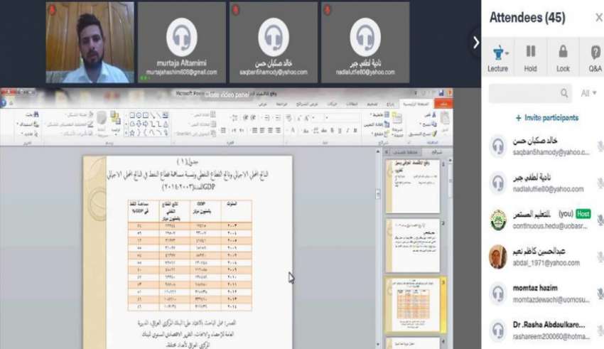 College of Education for Sciences, University of Basrah organized an online workshop on the reality of the Iraqi economy and ways to develop it, the Faculty Member, Mr. Murtaja Hashem Baqer Al-Tamimi said. Mr. Al-Tamimi added that the online workshop addressed the nature of the Iraqi economy after 2003, the extent of the distortions that accompanied the country's economic sectors and the possible ways to address the imbalance. Mr. Al-Tamimi continued by saying that the online workshop the imbalance of the State's productive structure, the imbalance of the general budget structure, the imbalance in the structure of foreign trade and the justifications for economic reform. Mr. Al-Tamimi said that the online workshop highlighted the extent of weakness in the Iraqi economy, which made the State’s economy and its federal budget under the weight of the fluctuations in global oil prices.
