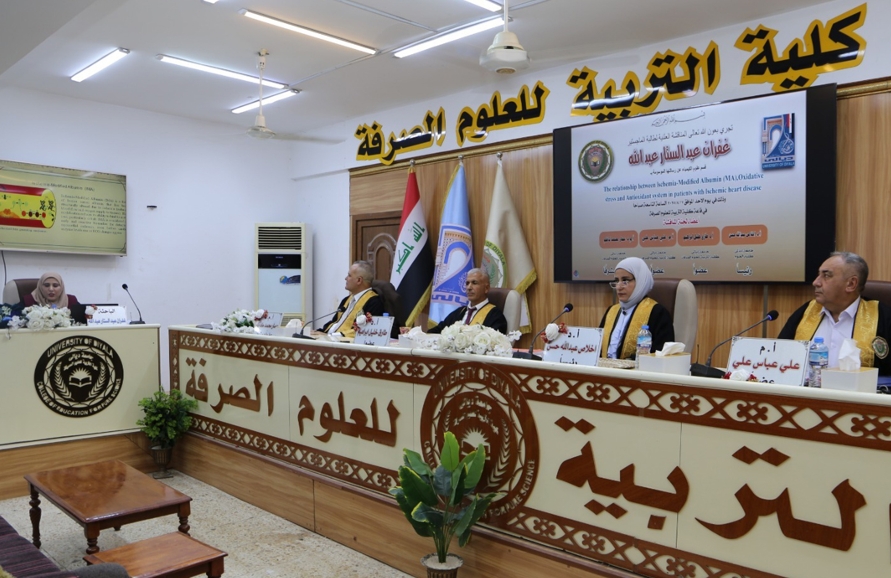 College of Education for Pure Sciences, University of Diyala discussed a master dissertation on the relation between ischemic modified albumin (IMA), oxidative stress and antioxidants in patients with ischemic heart disease by the postgraduate student, Ms. Ghufran Abdul Sattar Abdullah.