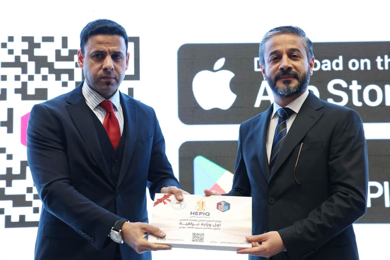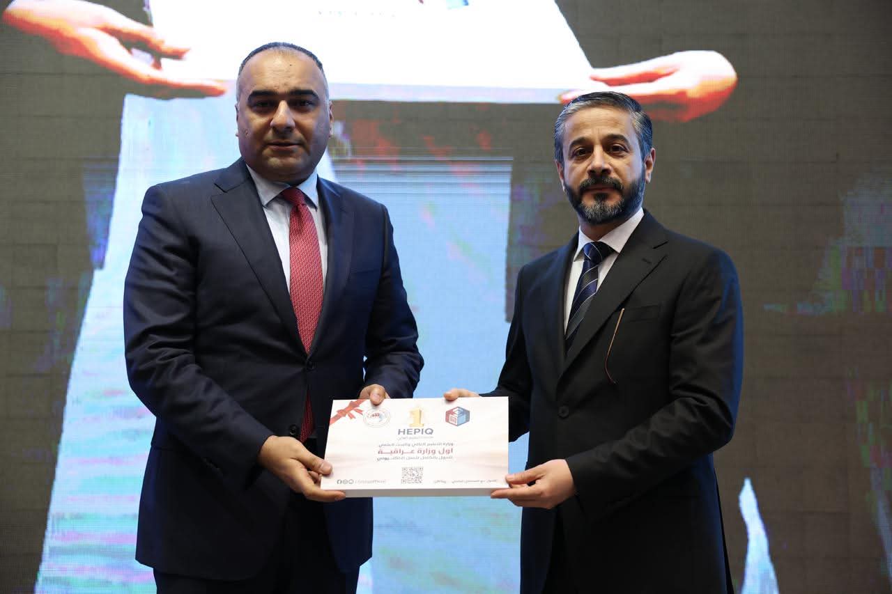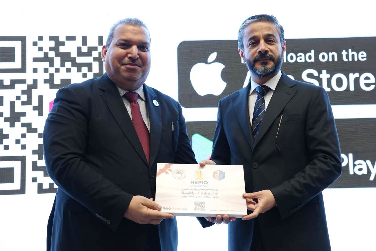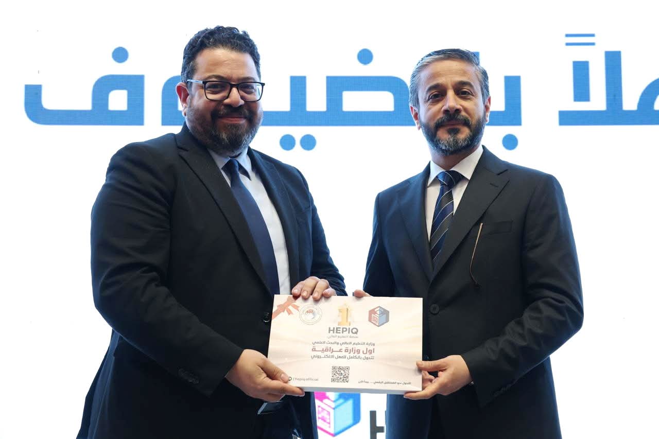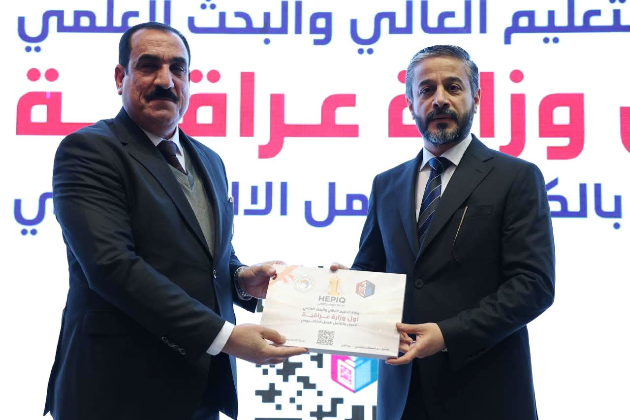During the Comprehensive Digital Governance ceremony, His Excellency, Minister of Higher Education and Scientific Research, Dr. Naeem Abd Yaser Al-Aboudi announced the end of the traditional paper-based era at the Ministry of Higher Education and Scientific Research and the launch of a new era of complete automation across all aspects of academic administration and administrative transactions.