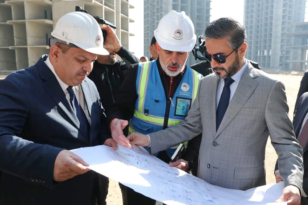 Dr. Al-Aboudi toured the residential site, accompanied by the Director of the Administrative and Financial, the Director of the Construction and Projects and the engineering team.