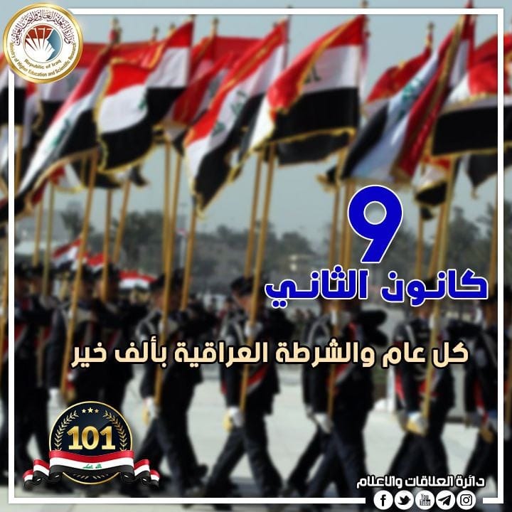 His Excellency, Minister of Higher Education and Scientific Research, Dr. Naeem Abd Yaser Al-Aboudi said that “We extend our warmest congratulations and blessings to the Iraqi police and all its formations on the 101st anniversary National Day”.