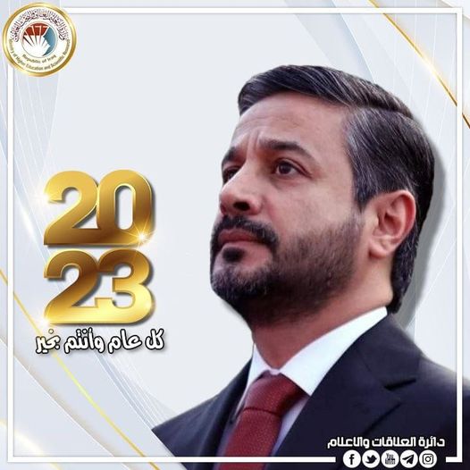 His Excellency, Minister of Higher Education and Scientific Research, Dr. Naeem Abd Yaser Al-Aboudi said that “We extend sincere congratulations and heartfelt wishes to all of our honorable Iraqi people on the occasion of the new year of the twenty-third after the two thousandth”.