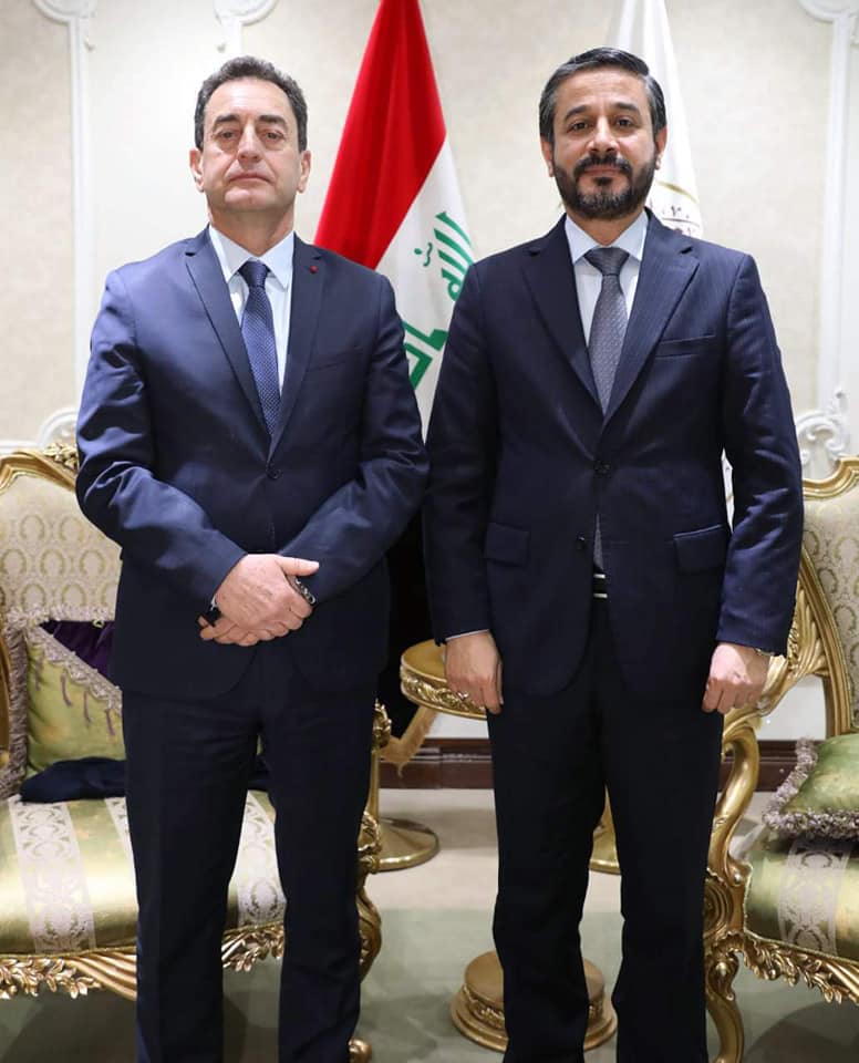 During a meeting with the French Ambassador to Iraq, Mr. Eric Chevalier and his accompanying delegation, His Excellency, Minister of Higher Education and Scientific Research, Dr. Naeem Abd Yaser Al-Aboudi reviewed that the two sides highlighted the horizons of joint cooperation between the two countries in the fields of Higher Education and Scientific Research, developing of an environment for academic coordination between university institutions and promoting of scientific and cultural exchange.