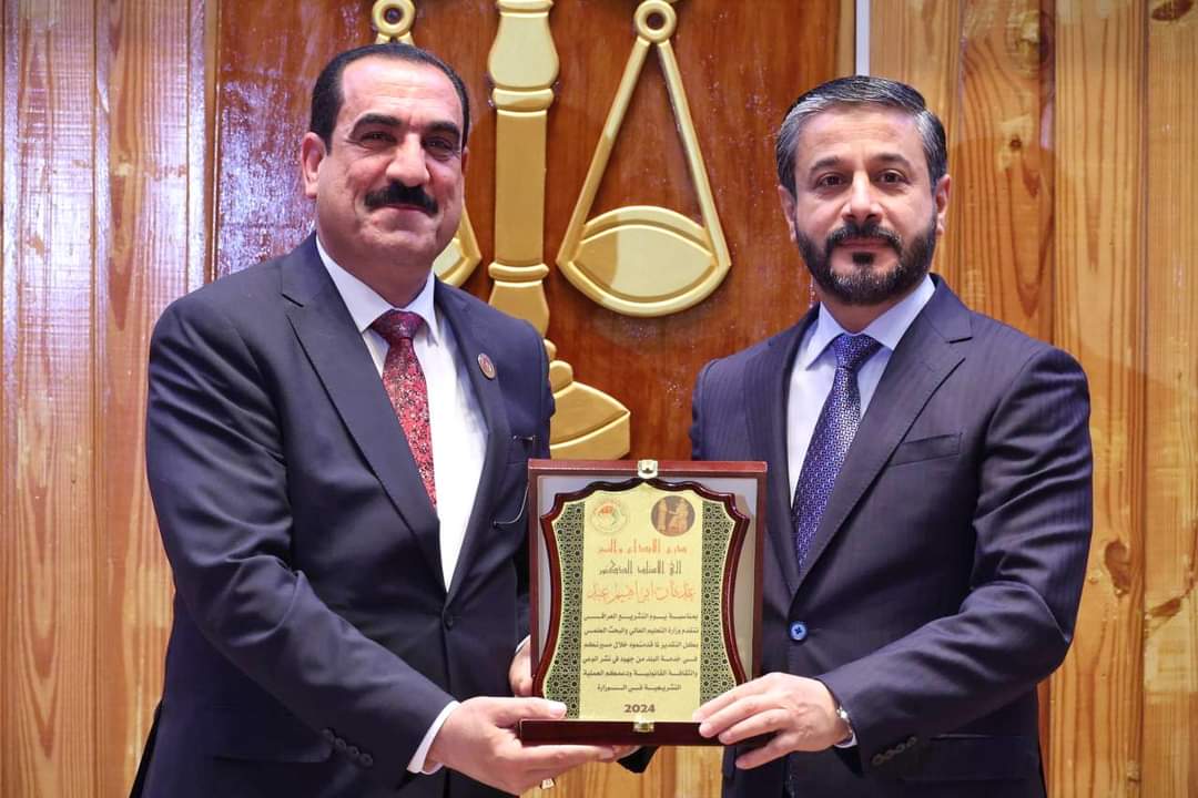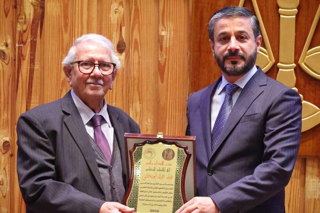 During Iraqi Legislation Day, which organized by the Legal Directorate, which was held at the College of Law, Al-Nahrain University, His Excellency, Minister of Higher Education and Scientific Research, Dr. Naeem Abd Yaser Al-Aboudi honored a number of pioneers, experts and specialists in the field of law on the occasion of Iraqi Legislation Day.