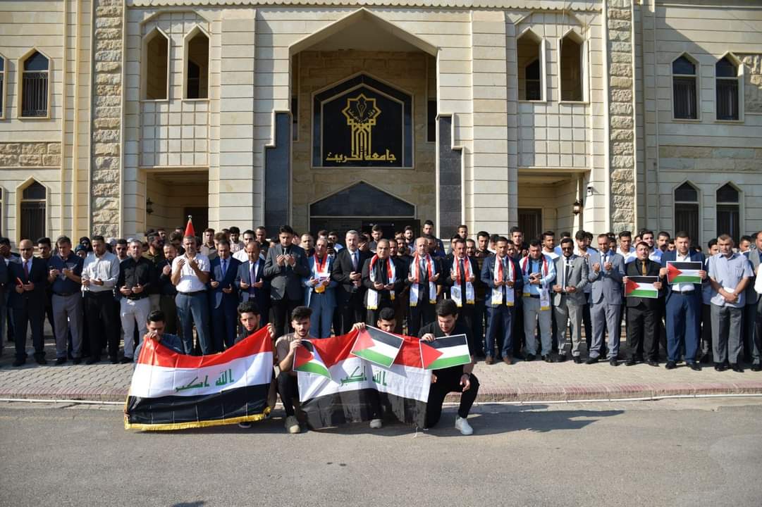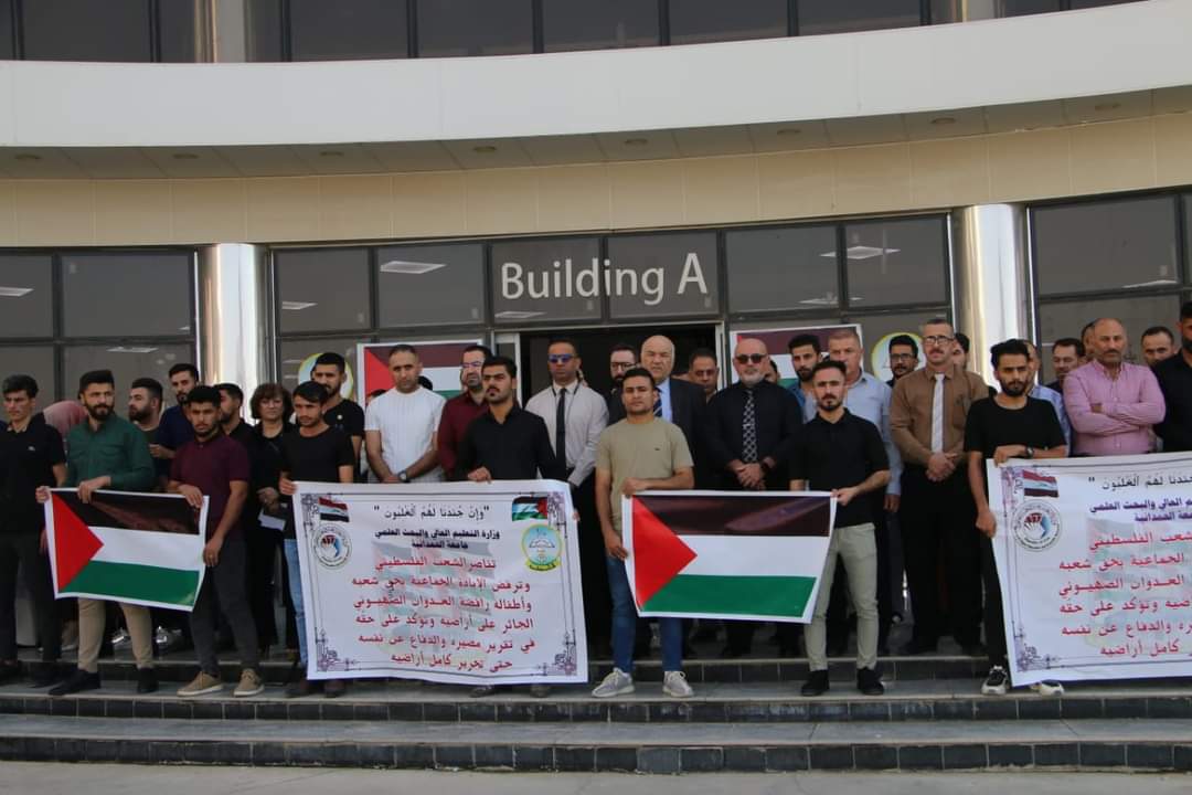 Higher Education reviewed that protesters affirmed their full solidarity with the Palestinians besieged in Gaza, calling for an end to the occupation's continuing crimes and massacres against innocents and civilians in the Strip, its hospitals and residential buildings.