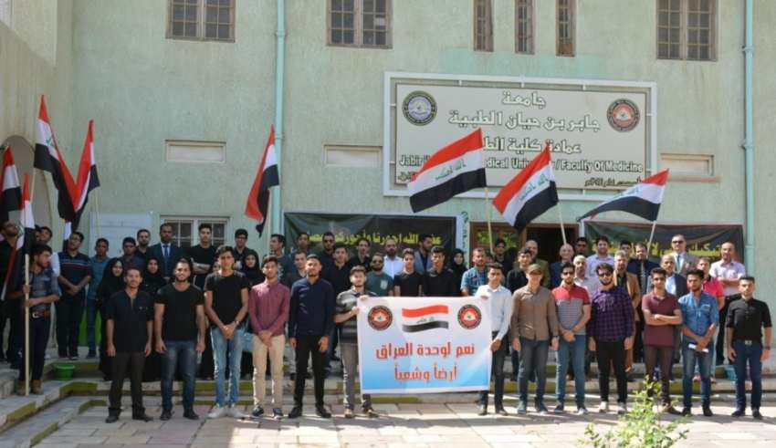 Jabir Ibn Hayyan Medical University organized a national solidarity rally, President of the University, Dr. Ali Mahmoud Sahib Al-Shemari said.