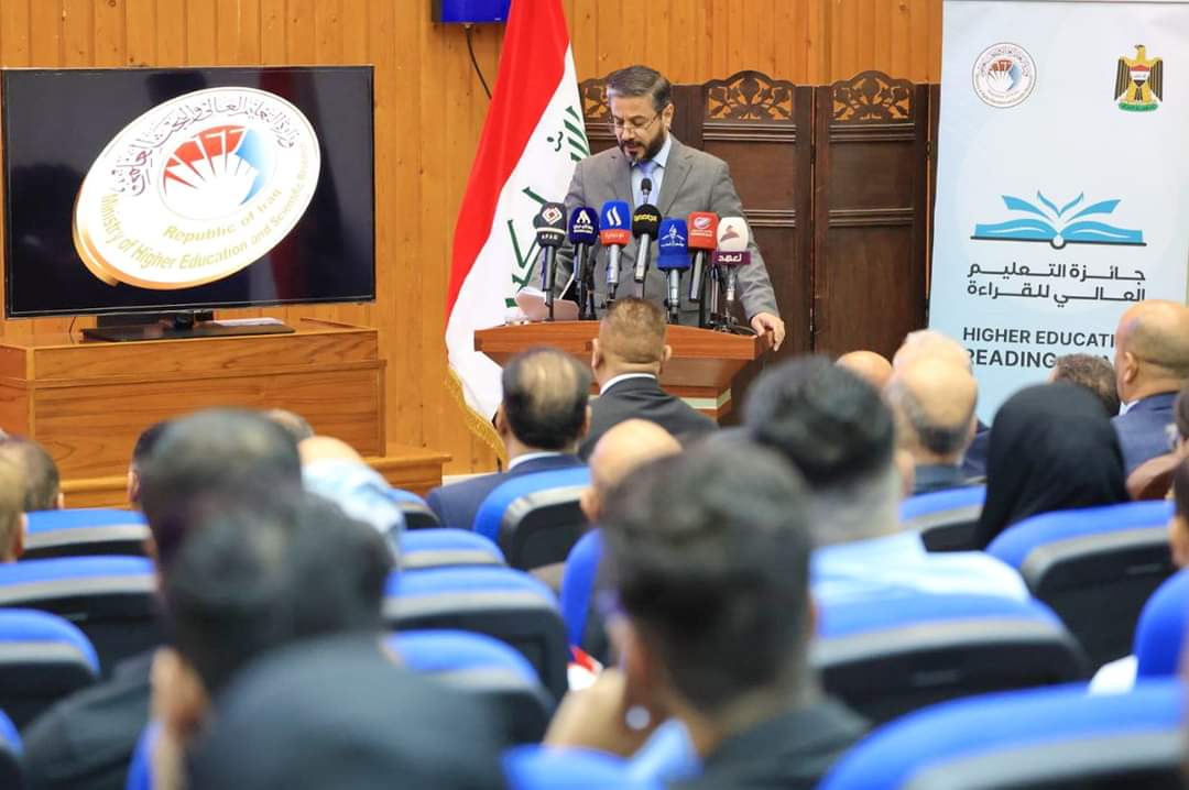 During the celebration held to honor the winners of the Higher Education Reading Award, His Excellency, Minister of Higher Education and Scientific Research, Dr. Naeem Abd Yaser Al-Aboudi confirmed that the award in which more than forty-two thousand students were registered, contributed to stimulating the cultural awareness responsible for promoting trends in productive and creative thinking at the individual and societal levels today and in the future.