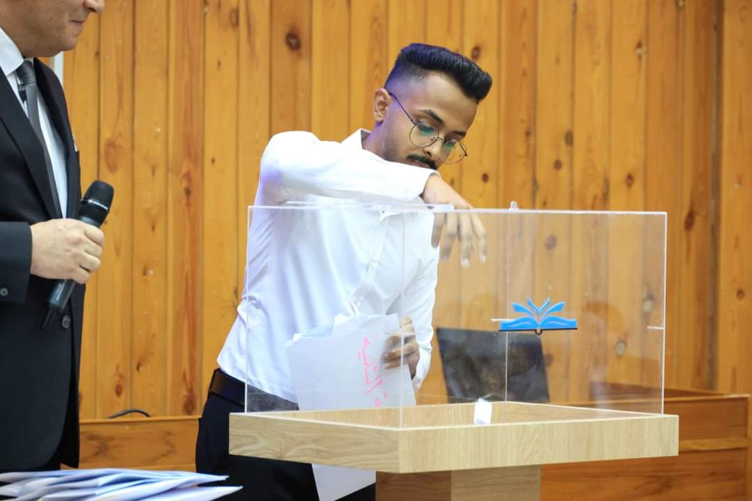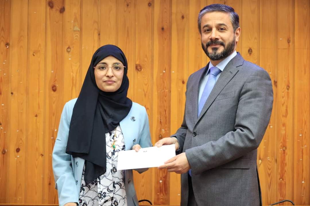 For his part, Ministry’s Advisor and the Head of the organizing committee, Dr. Allaa Abd Al-Hassan Attia reviewed the stages of preparing and organizing the award and the mechanisms for conducting the lottery among the 100 participated students who achieved the highest scores in the test that took place on the fifteenth of last September.