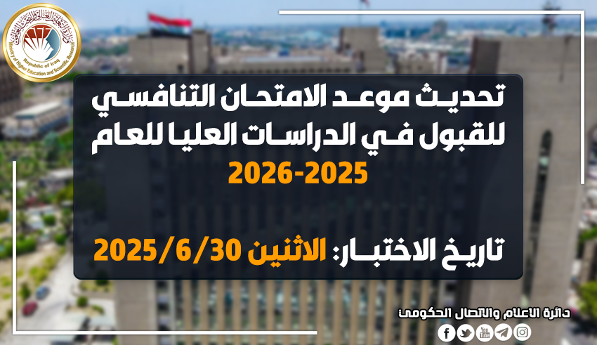 تحديد الاثنين الموافق 2025/6/30 موعدا جديدا للامتحان التنافسي للقبول في الدراسات العليا