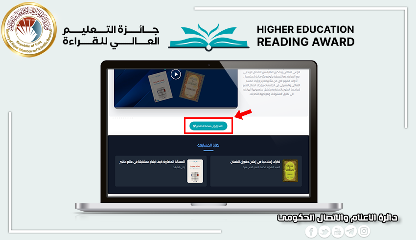 عن طريق (اسم المستخدم وكلمة المرور) الواردة في البريد الإلكتروني الجامعي سيتسنى للطلبة المتنافسين المسجلين في جائزة التعليم العالي للقراءة الدخول إلى منصة الاختبار المقرر غدا السبت الموافق 2024/10/12.