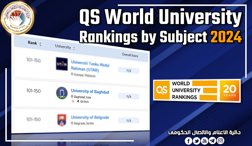 فيه جامعة بغداد ضمن تخصص (Dentistry & Oral Sciences) وتصنيف (QS) الذي