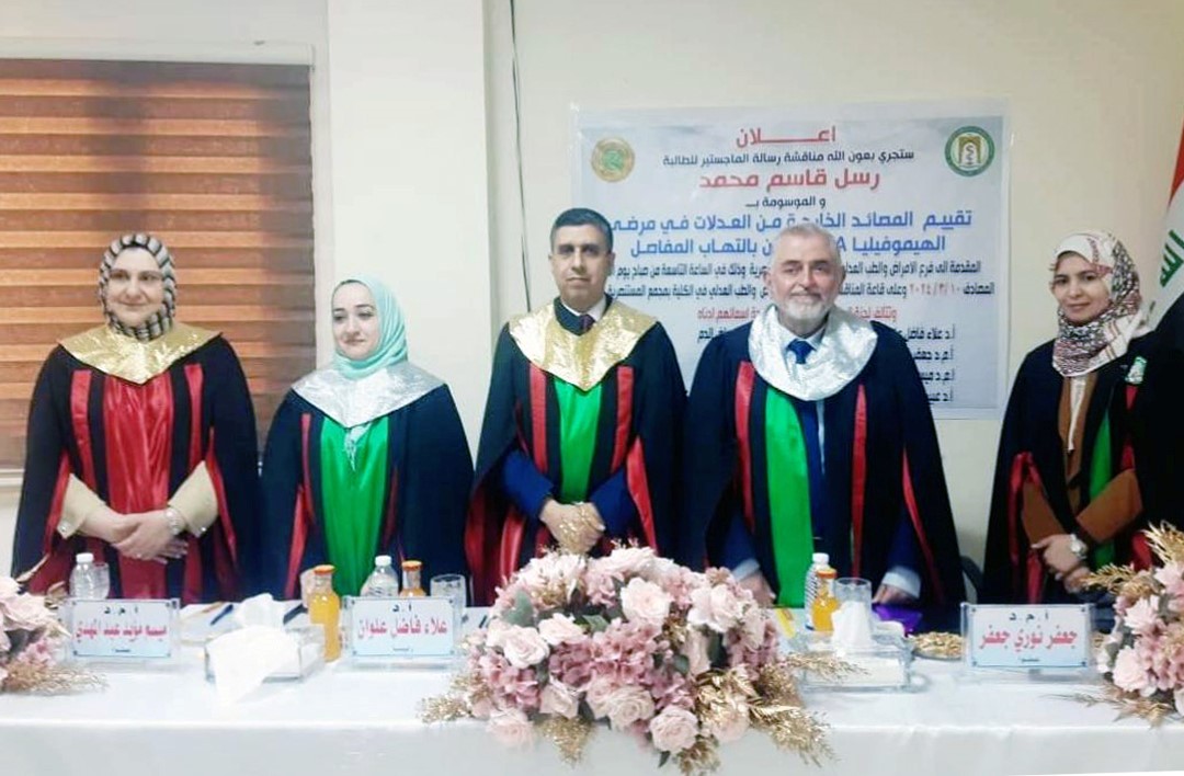 وتضمنت الرسالة التي قدمتها الطالبة رسل قاسم محمد، تقييم مستوى المصائد الخارجة من خلايا العدلات لدى عينة من المرضى العراقيين المصابين بنزف الدم الوراثي من النوع (A) بالاعتماد على طريقتين مختلفتين هما تقنية التدفق الخلوي والطريقة المناعية بتقنية الاليزا، فضلاً عن مقارنة النتائج لكلتا الطريقتين مع المؤشرات السريرية والمختبرية للمرضى.