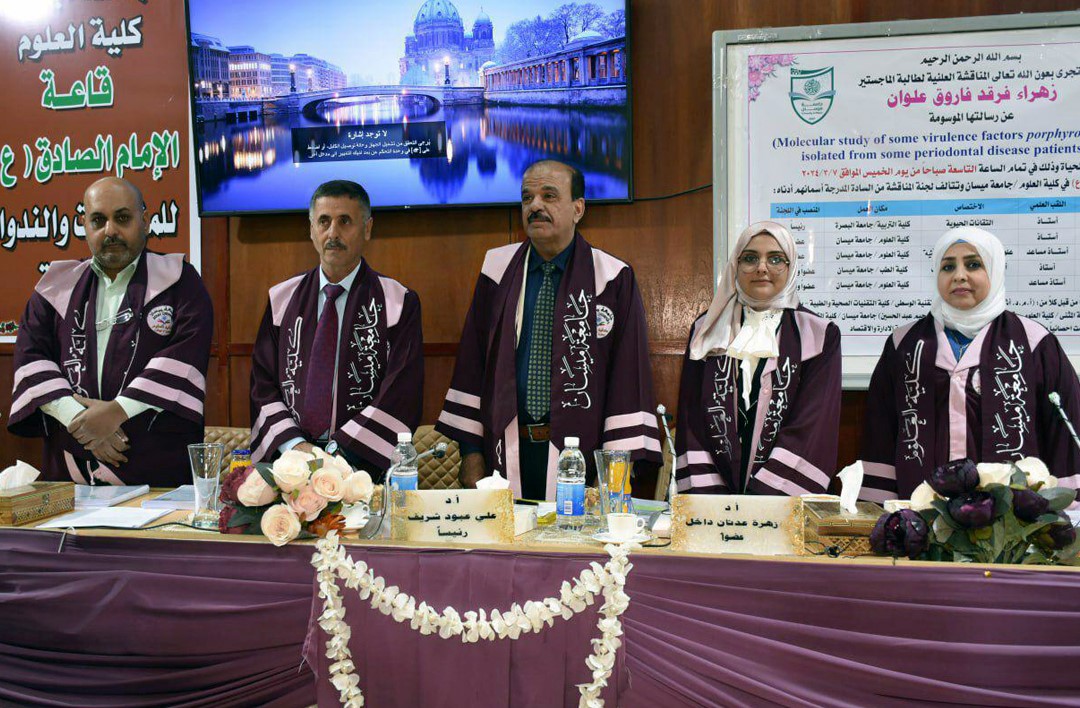 ناقشت رسالة ماجستير في كلية العلوم بجامعة ميسان عزل
