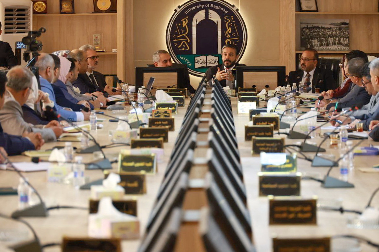 عقد وزير التعليم العالي والبحث العلمي الدكتور نعيم العبودي اجتماعا مع مجلس جامعة بغداد وناقش النتائج المتحققة على صعيد البحث العلمي والتصنيفات العالمية.