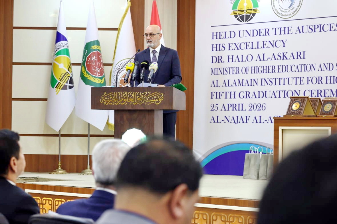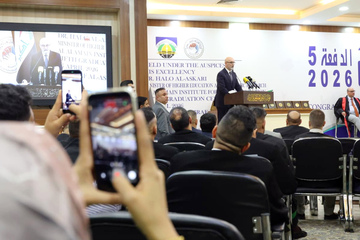 كرم وزير التعليم العالي والبحث العلمي وكالة الدكتور هه لو العسكري خريجي الدفعة الخامسة من طلبة معهد العلمين للدراسات العليا في النجف الأشرف.