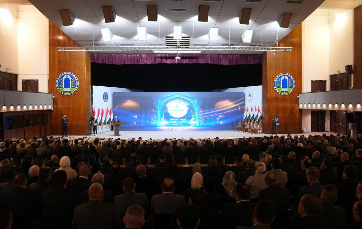 وأكد في كلمته بجامعة بغداد بحضور السيد رئيس مجلس الوزراء وممثلي مؤسسات الدولة ورؤساء الجامعات العراقية ومجالسها أن مسؤولية الجميع لاسيما الجامعات تقتضي أن يكونوا ركيزة دائمة في معادلة الوعي المستندة إلى الثوابت وجزءا أصيلا من هوية الانتماء إلى القرآن الكريم وأن يسهموا عبر الحضور الأكاديمي والعلمي في حماية المجتمع وأجياله وحفظ استحقاقات تاريخه وثقافته وحاضره ومستقبله.
