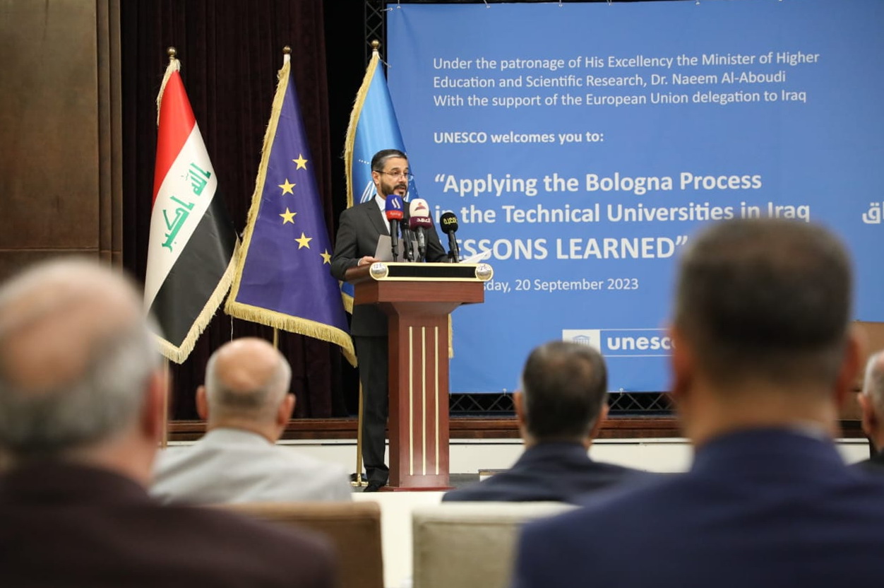 عقدت وزارة التعليم العالي والبحث العلمي مؤتمرها عن تطبيق مسار بولونيا في الجامعات التقنية في العراق بالتعاون مع بعثة الإتحاد الأوربي ومكتب اليونسكو في بغداد.