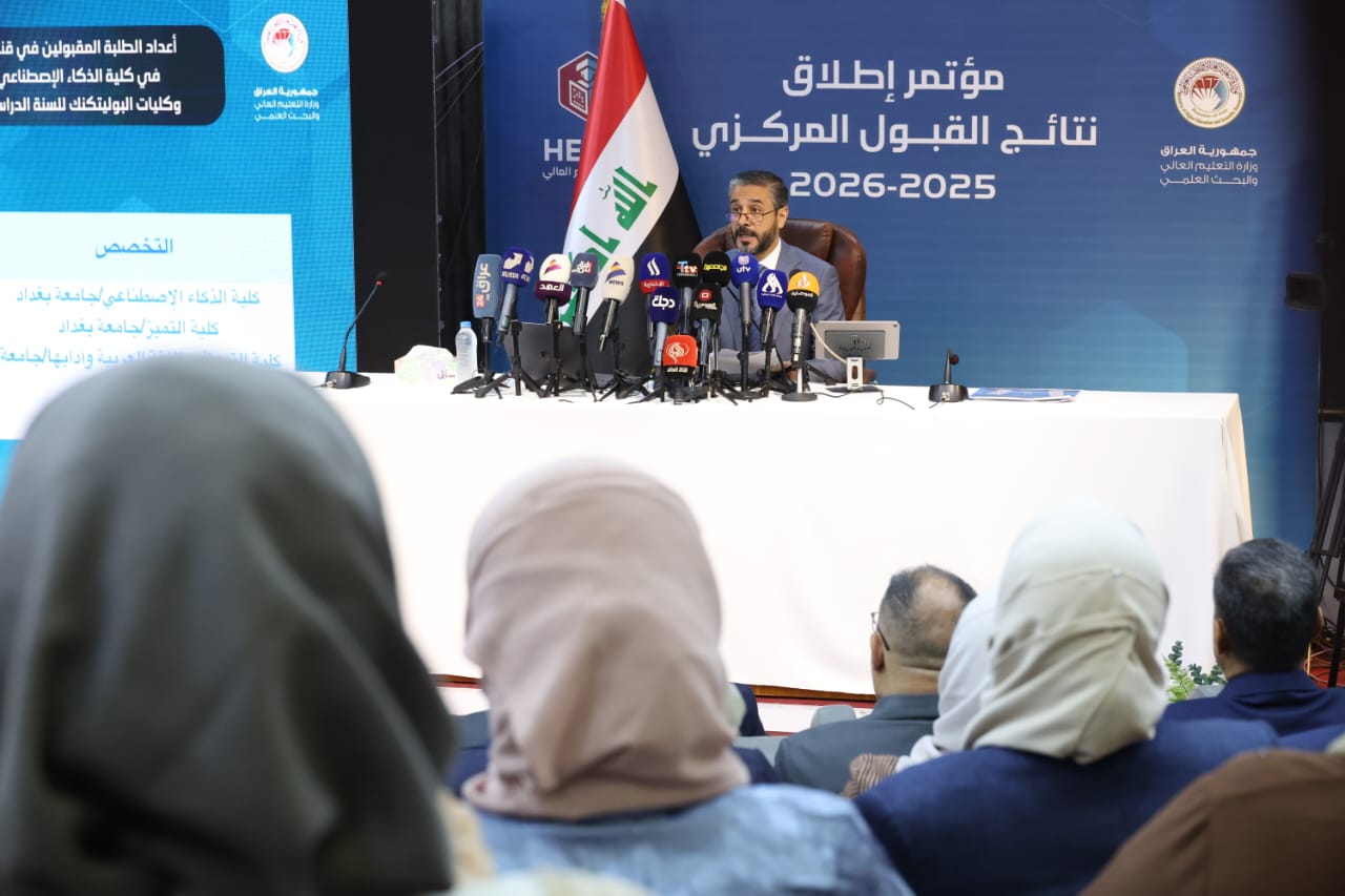 أعلن وزير التعليم العالي والبحث العلمي الدكتور نعيم العبودي قبول 185416 طالبا ضمن قنوات القبول المركزي في الجامعات العراقية للعام الدراسي 2026/2025.