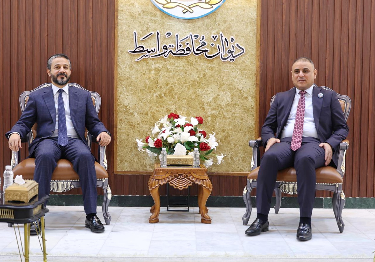 بحث وزير التعليم العالي والبحث العلمي الدكتور نعيم العبودي مع محافظ واسط الدكتور محمد جميل المياحي وأعضاء مجلسها دعم المؤسسات الجامعية وتعزيز التكامل المؤسساتي.