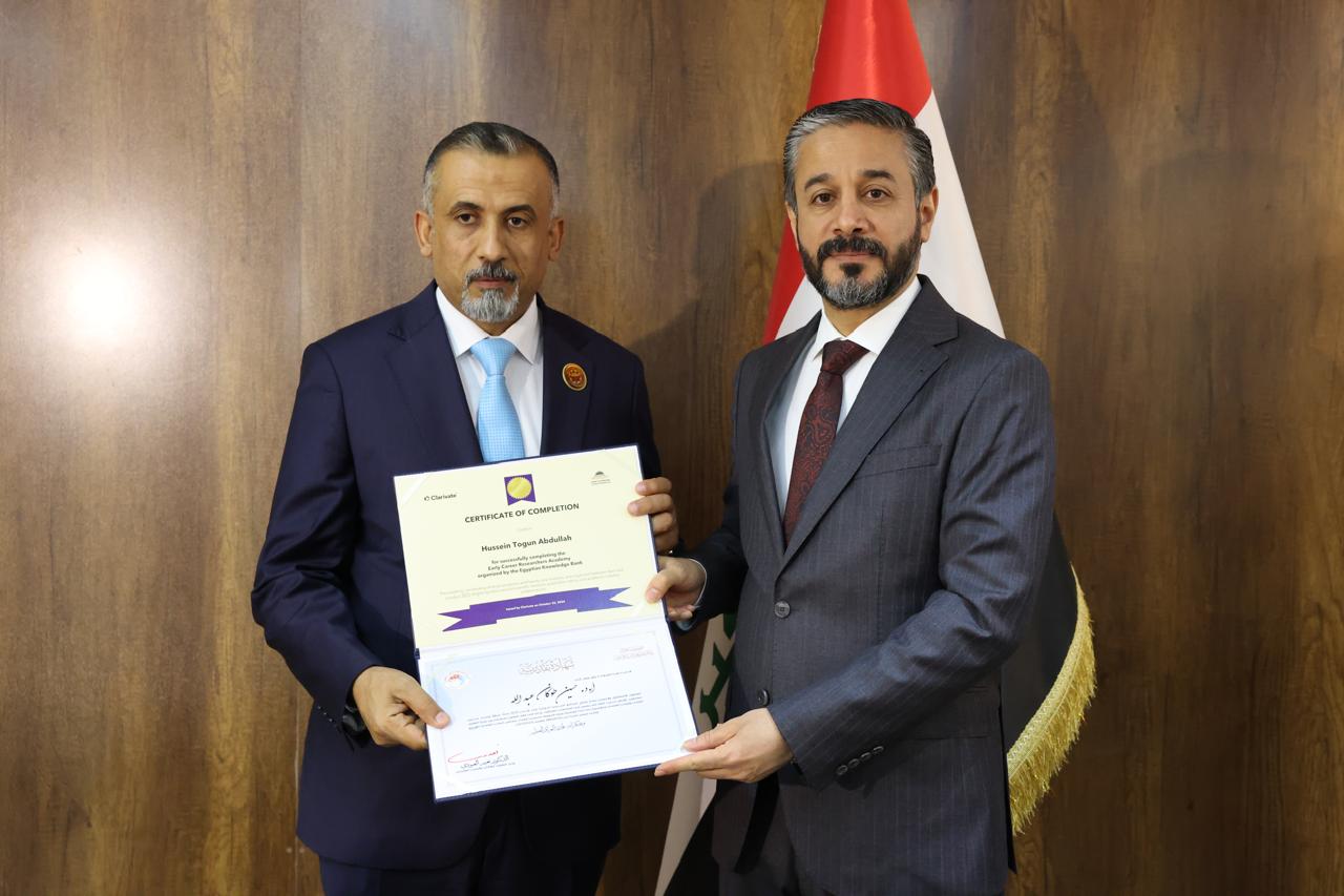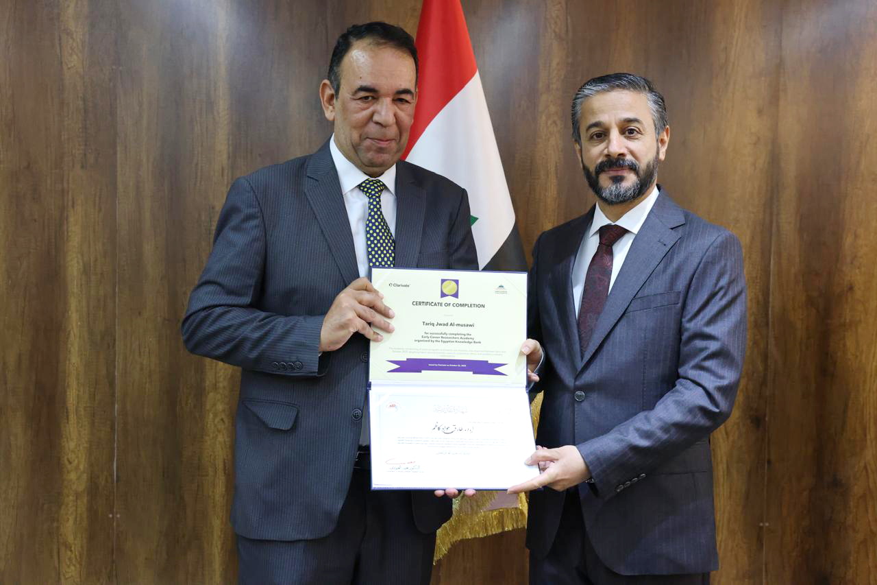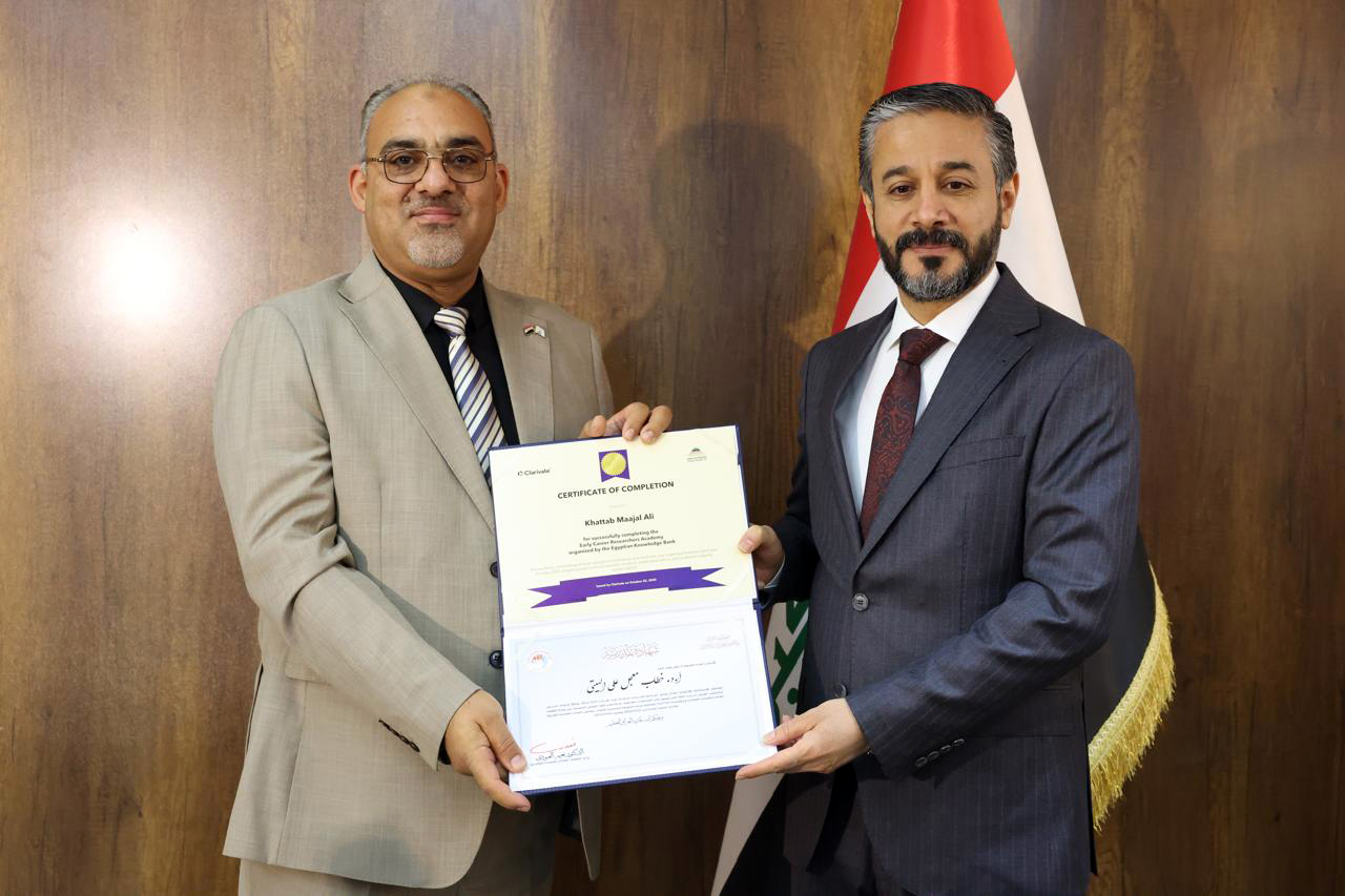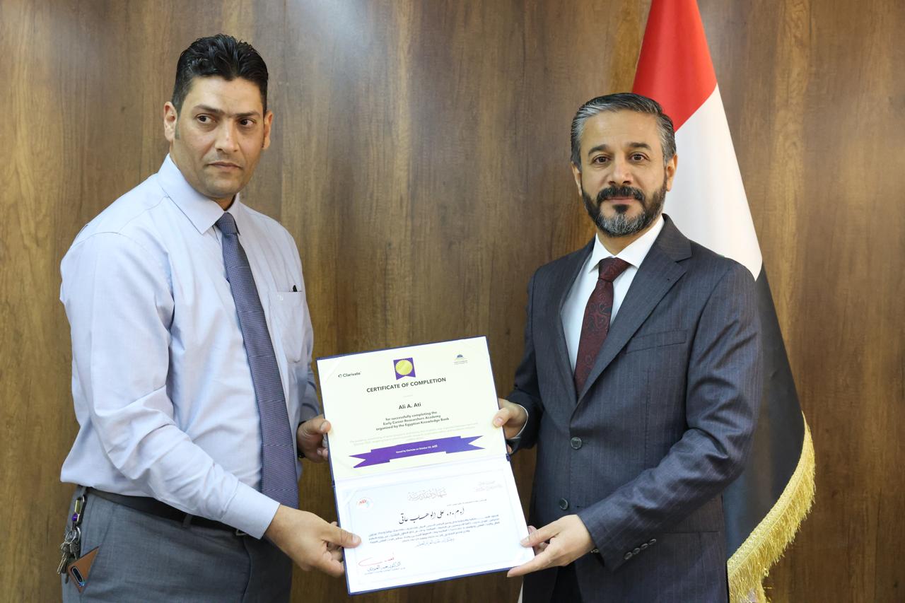 جاء ذلك في كلمته خلال حفل توزيع شهادات التقدير والمشاركة لخمسين باحثاً عراقياً أكملوا الدورة التدريبية الخاصة بإعداد المدربين في مهارات البحث العلمي التي نُظِّمت بالتعاون مع اتحاد مجالس البحث العلمي العربية ومؤسسة Clarivate وبنك المعرفة المصري.