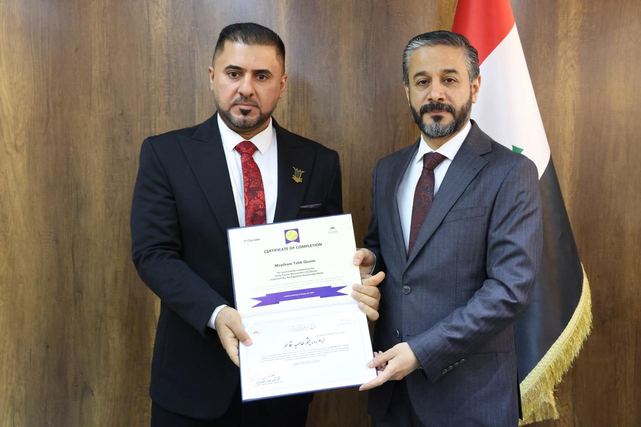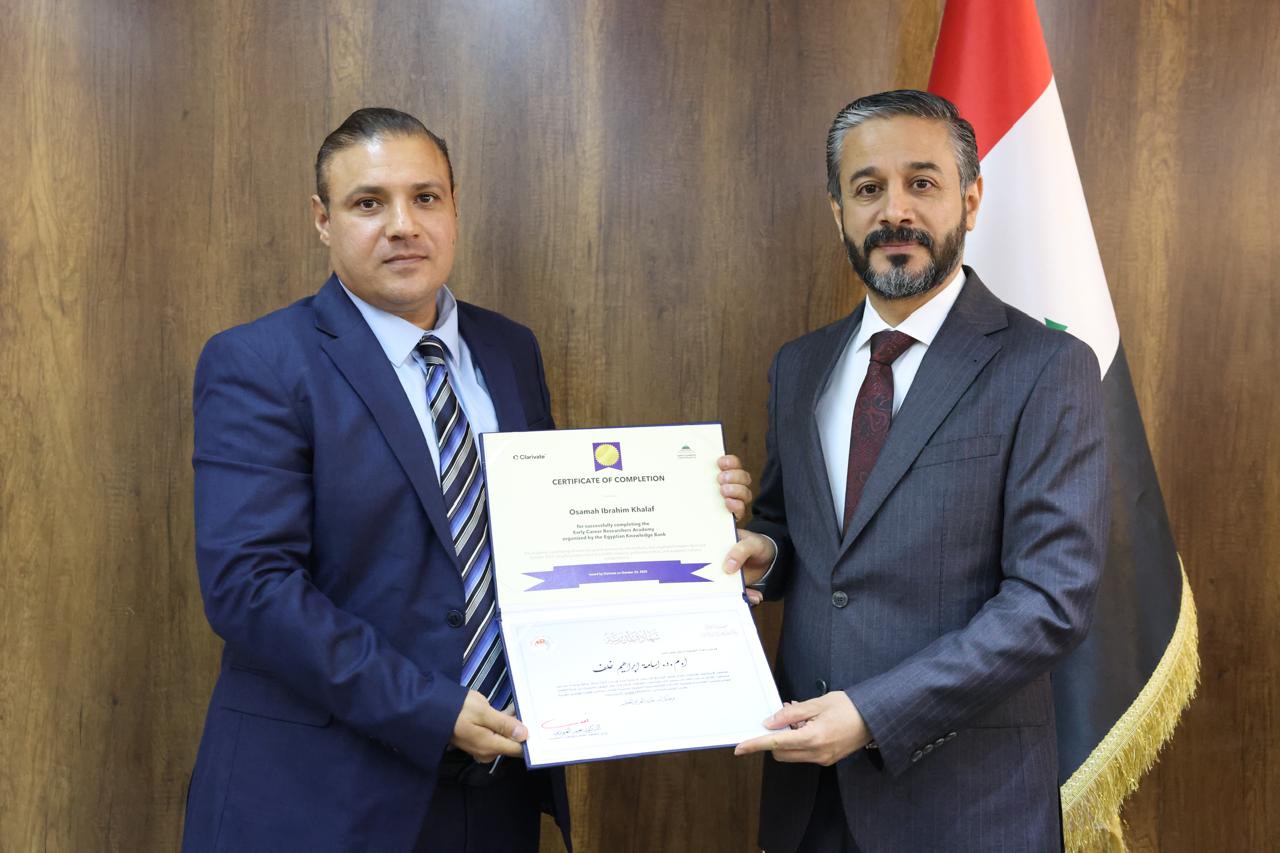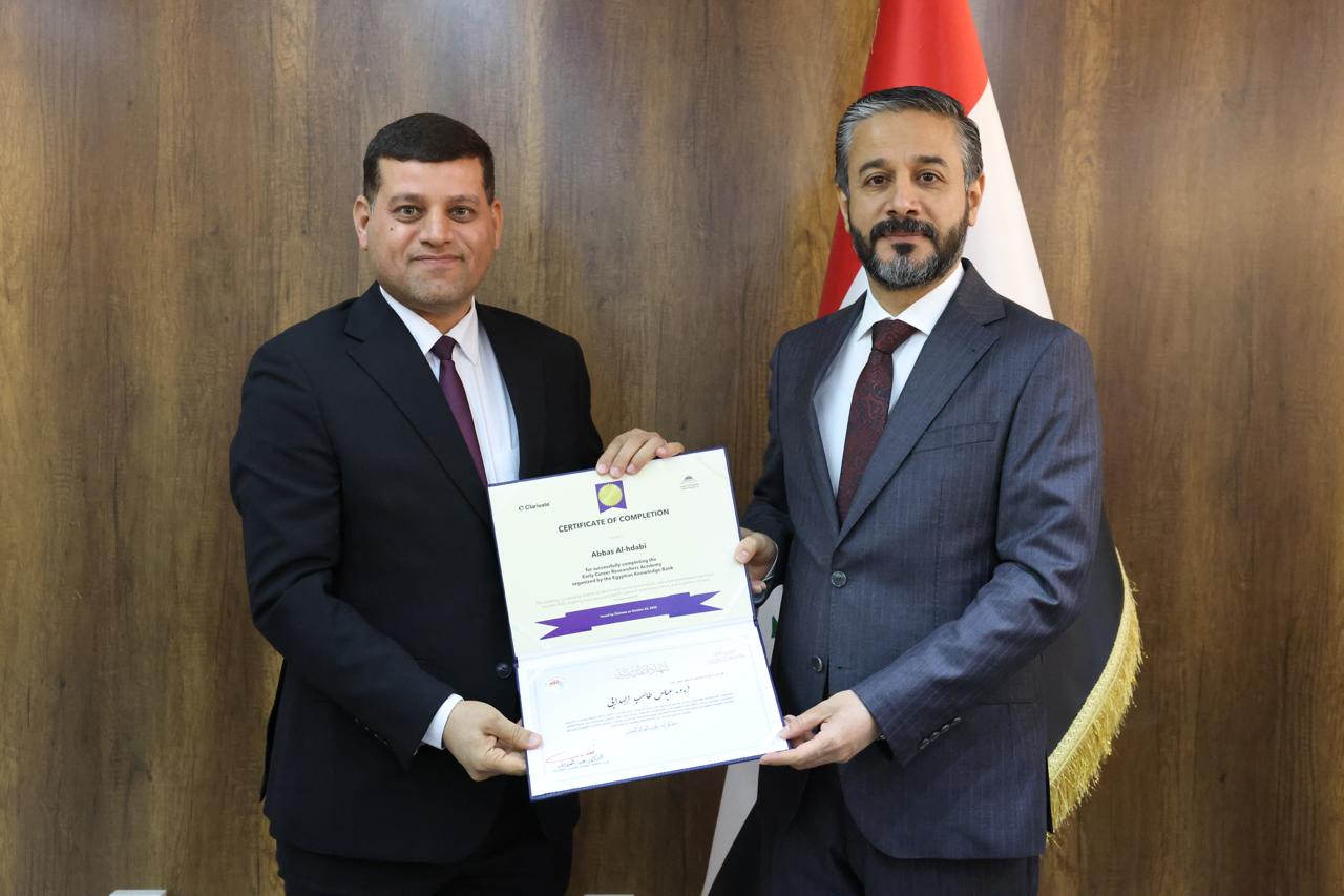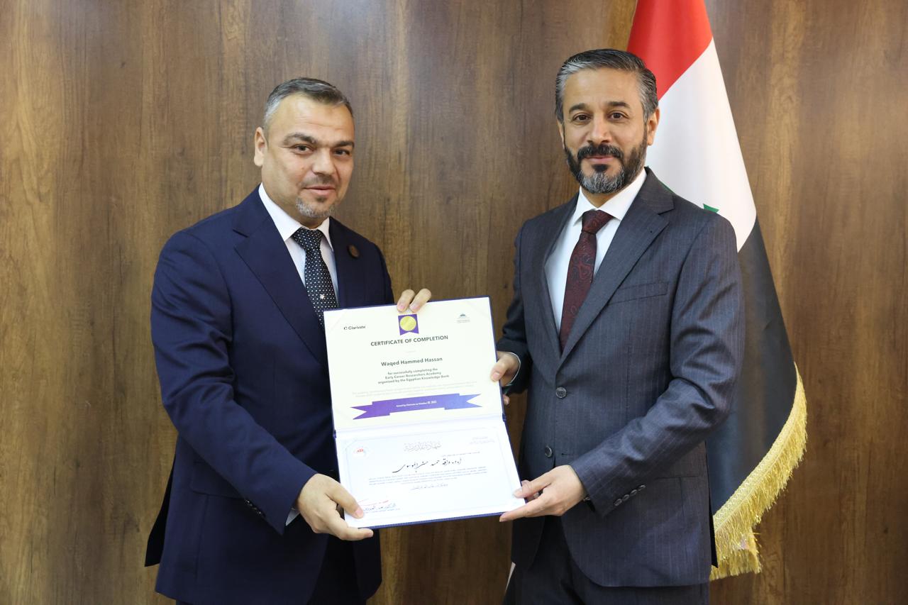 جاء ذلك في كلمته خلال حفل توزيع شهادات التقدير والمشاركة لخمسين باحثاً عراقياً أكملوا الدورة التدريبية الخاصة بإعداد المدربين في مهارات البحث العلمي التي نُظِّمت بالتعاون مع اتحاد مجالس البحث العلمي العربية ومؤسسة Clarivate وبنك المعرفة المصري.
