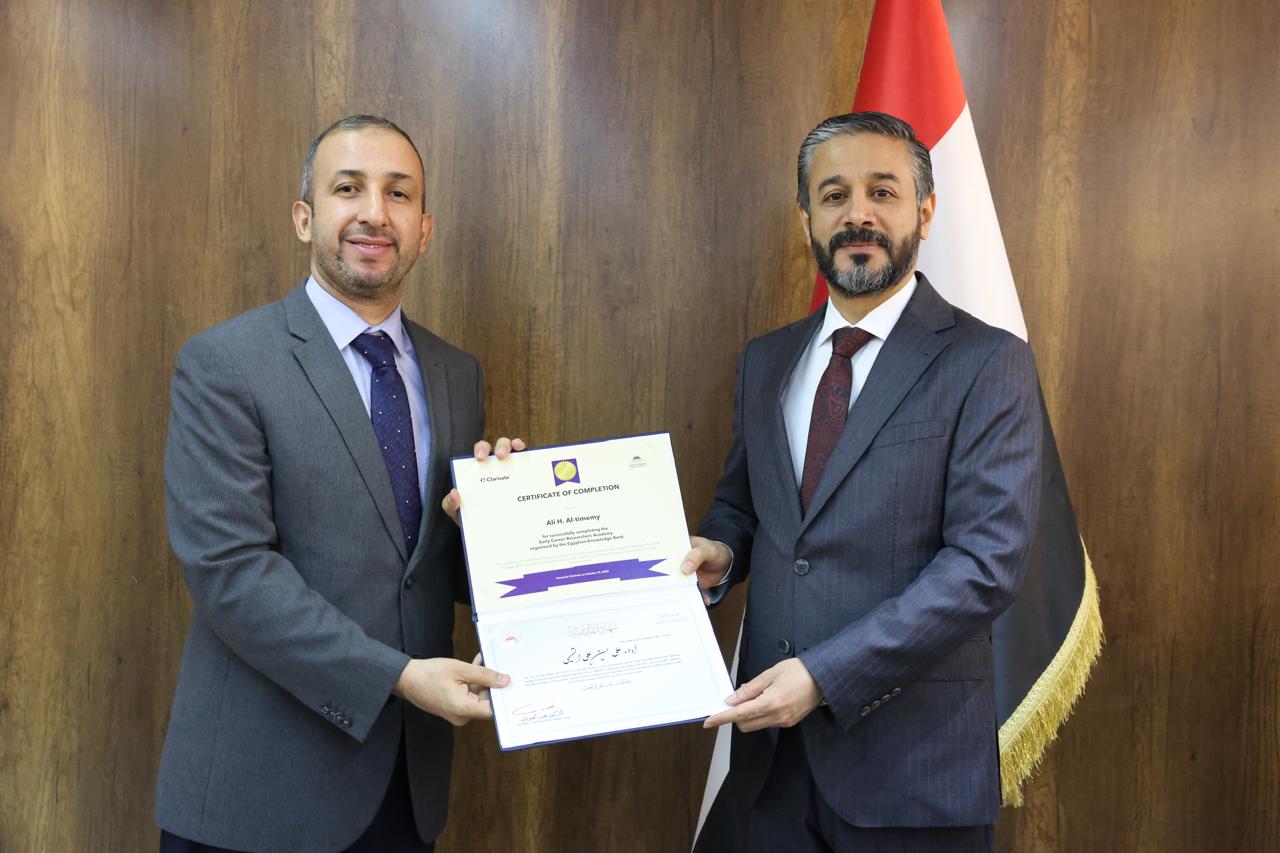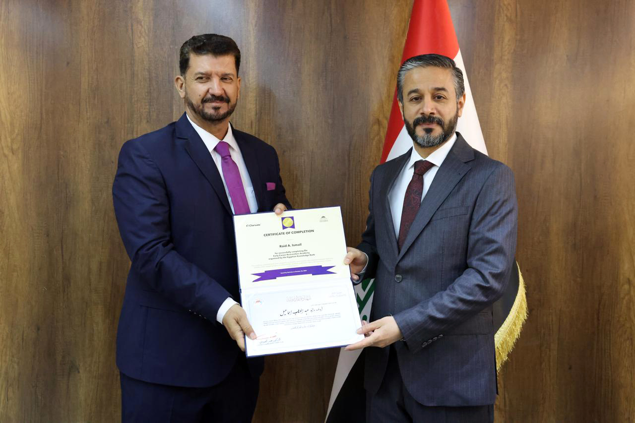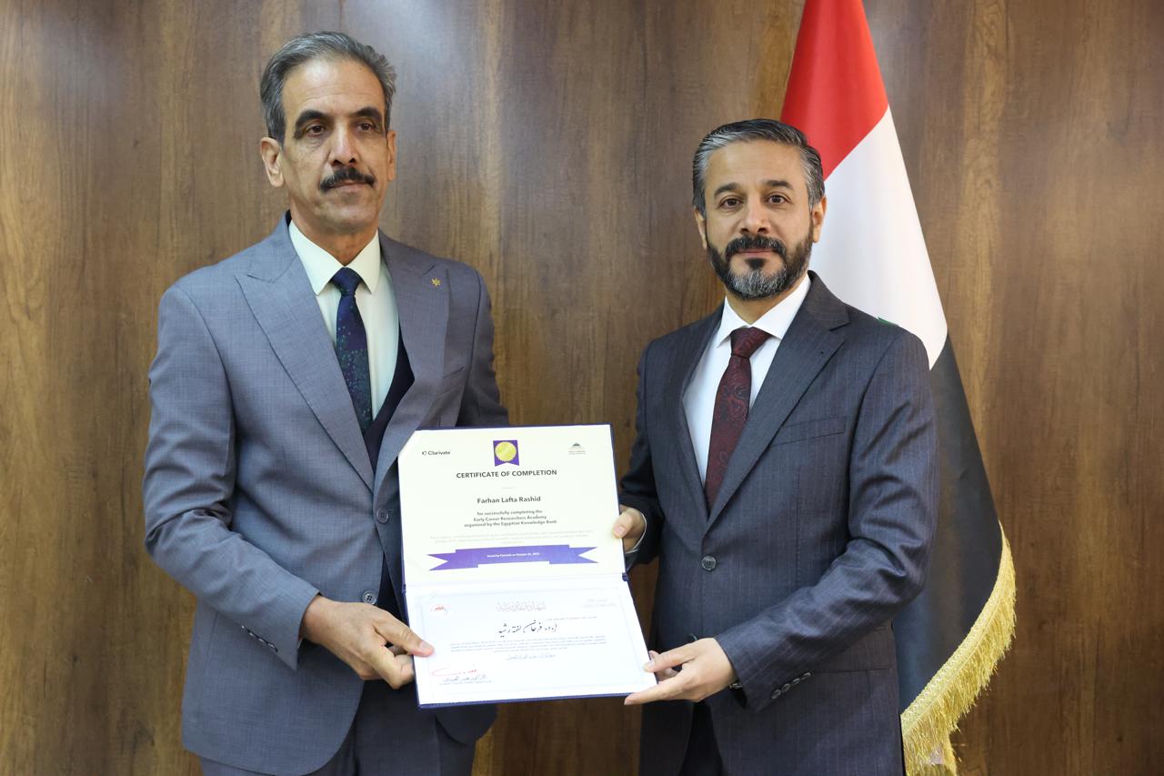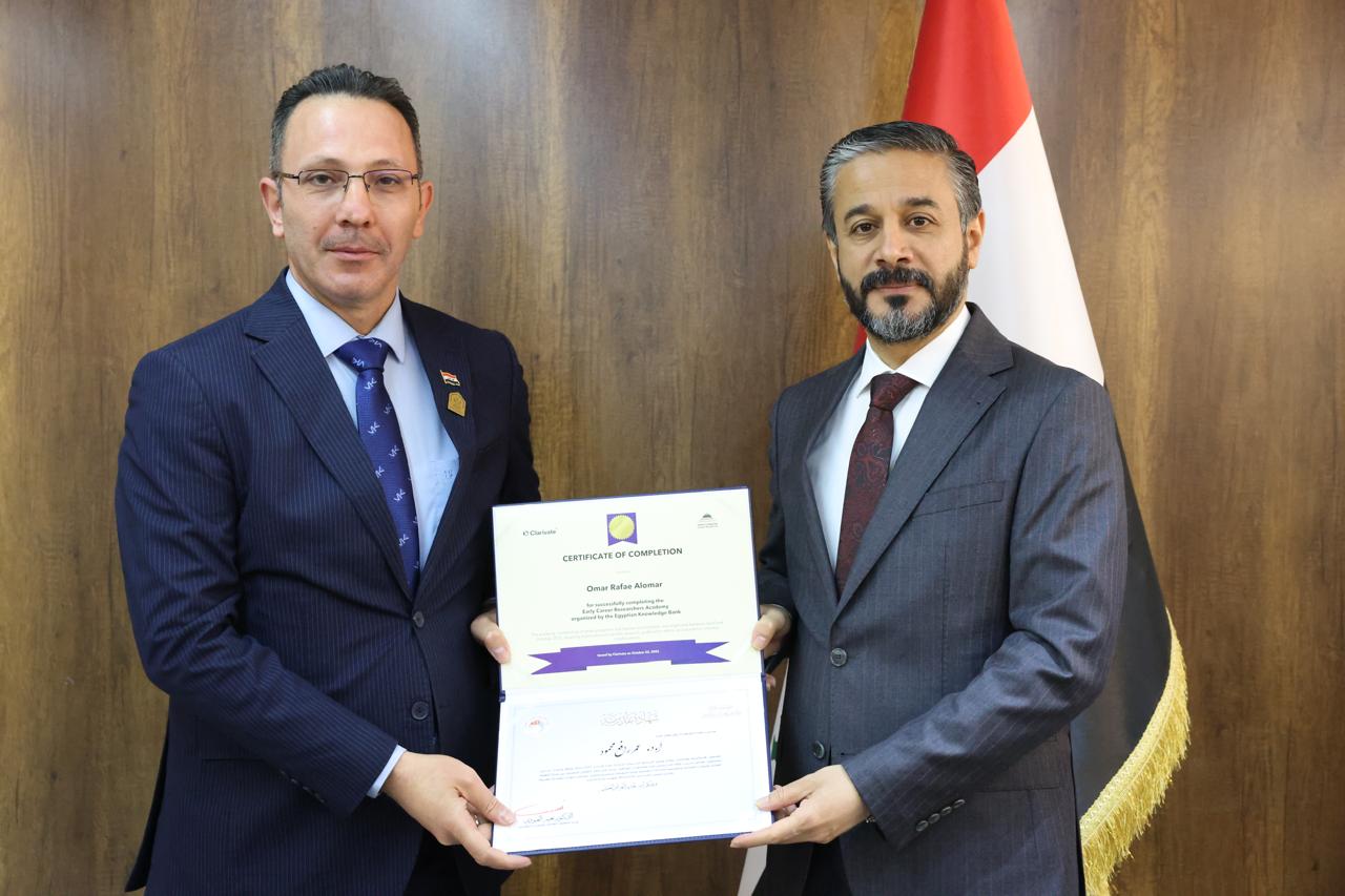 جاء ذلك في كلمته خلال حفل توزيع شهادات التقدير والمشاركة لخمسين باحثاً عراقياً أكملوا الدورة التدريبية الخاصة بإعداد المدربين في مهارات البحث العلمي التي نُظِّمت بالتعاون مع اتحاد مجالس البحث العلمي العربية ومؤسسة Clarivate وبنك المعرفة المصري.