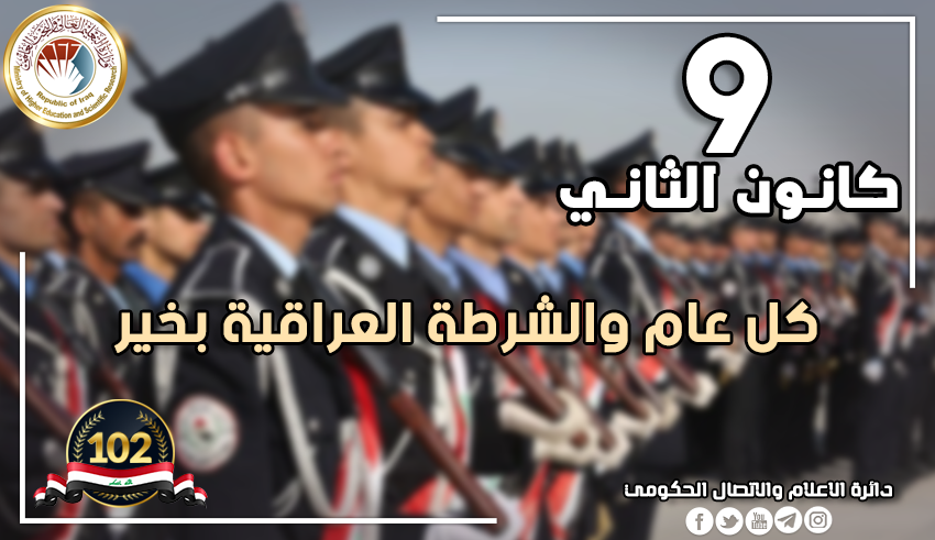 نبارك ونهنئ الشرطة العراقية وأبطالها بعيدها الوطني الثاني بعد المئة ونعرب عن حفاوتنا بالتضحيات والواجبات التي يسطرها منتسبو هذه المؤسسة العريقة في الحفاظ على الأمن الداخلي ورعاية المجتمع وتنفيذ القوانين المسؤولة عن حياة المواطنين.