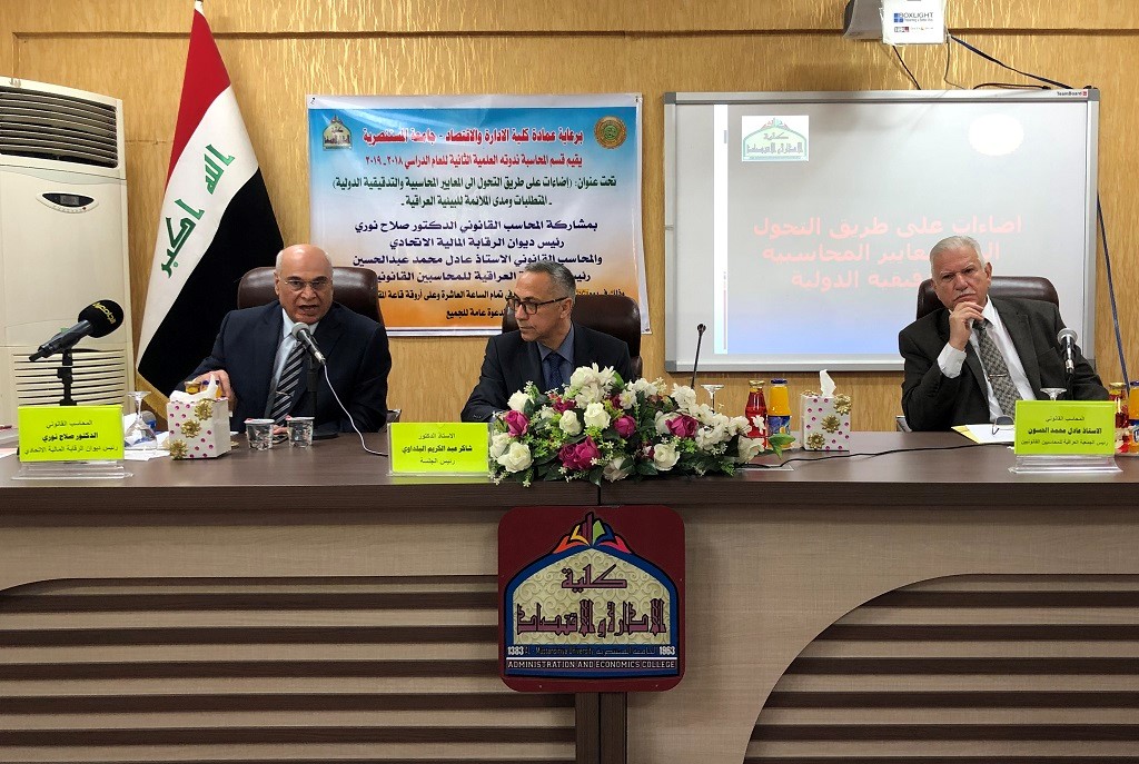 نظمت كلية الإدارة والاقتصاد في الجامعة المستنصرية، ندوة علمية عن المعايير المحاسبية والتدقيقية الدولية وإمكانية تطبيقها في العراق، بمشاركة عدد من المختصين والباحثين والتدريسيين والطلبة.