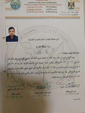 وجه وزير التعليم العالي والبحث العلمي الأستاذ الدكتور قصي السهيل بتعيين الكفيف احمد جواد كاظم المتخرج الأول على كلية الآداب/ قسم علوم القران في جامعة ذي قار للسنة الدراسية 2018/2017 على ملاك الجامعة.
