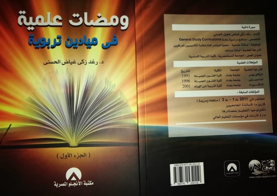 صدر للتدريسية في كلية التربية الأساسية بالجامعة المستنصرية الدكتورة رغد زكي غياض الحسني، كتاب عن ومضات علمية في ميادين تربوية: دراسات في المناهج وطرائق التدريس وعلم الإدارة.