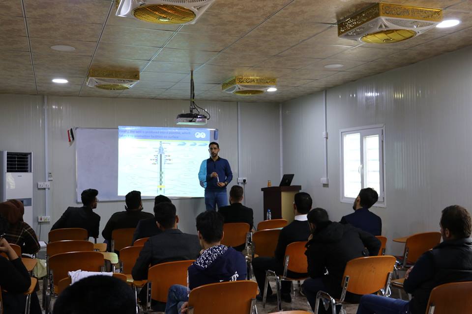 وتضمنت الورشة محاضرة ألقاها التدريسي صفاء مجيد من شركة British Petroleum البريطانية النفطية العالمية التعريف بموضوع Production Logging وما الأدوات التي تستعمل لمعرفة مختلف المتغيرات التي يجب معرفتها اثناء العمليات التي تجري على الآبار النفطية.