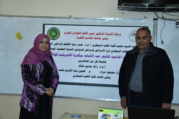 نظمت كلية الطب البيطري في جامعة القاسم الخضراء ندوة عن الاستجابة المناعية للكيفر ضد الاصابة ببكتريا الاشريشيا كولاي ،بمشاركة باحثين ومختصين