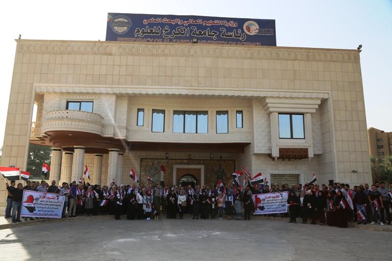 نظمت جامعة الكرخ للعلوم وقفة وطنية للتعبير عن رفض كل محاولات تقسيم العراق ، بمشاركة اساتذة وطلبة ومنتسبي الجامعة .