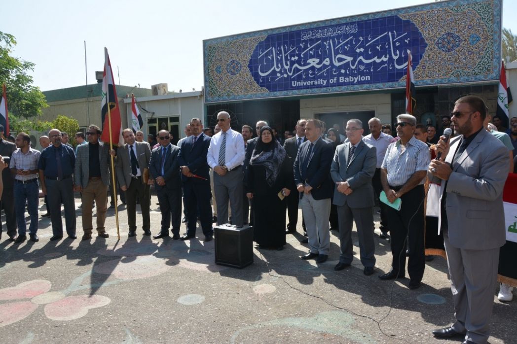 نظمت جامعة بابل وقفة وطنية لدعم وحدة العراق ورفض الأصوات الداعية لتقسيمه، بمشاركة طلبة وتدريسي ومنتسبي الجامعة.